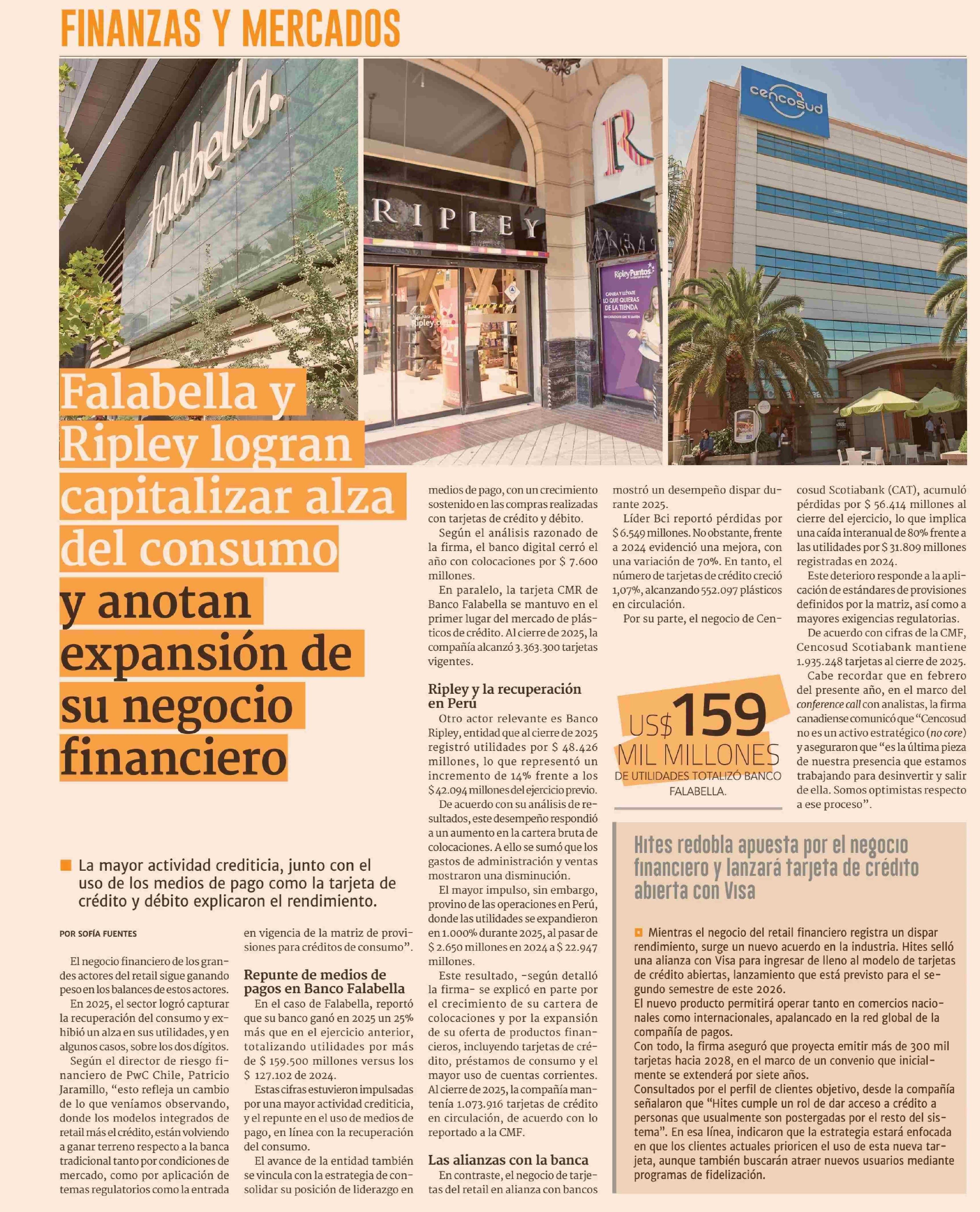 Falabella y Ripley logran capitalizar alza del consumo uy anotan expansión de su negocio financiero