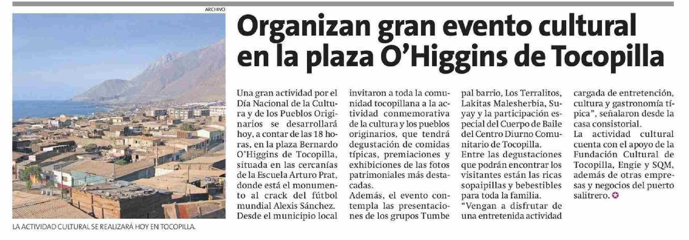 Organizan gran evento cultural en la plaza O'Higgins de Tocopilla