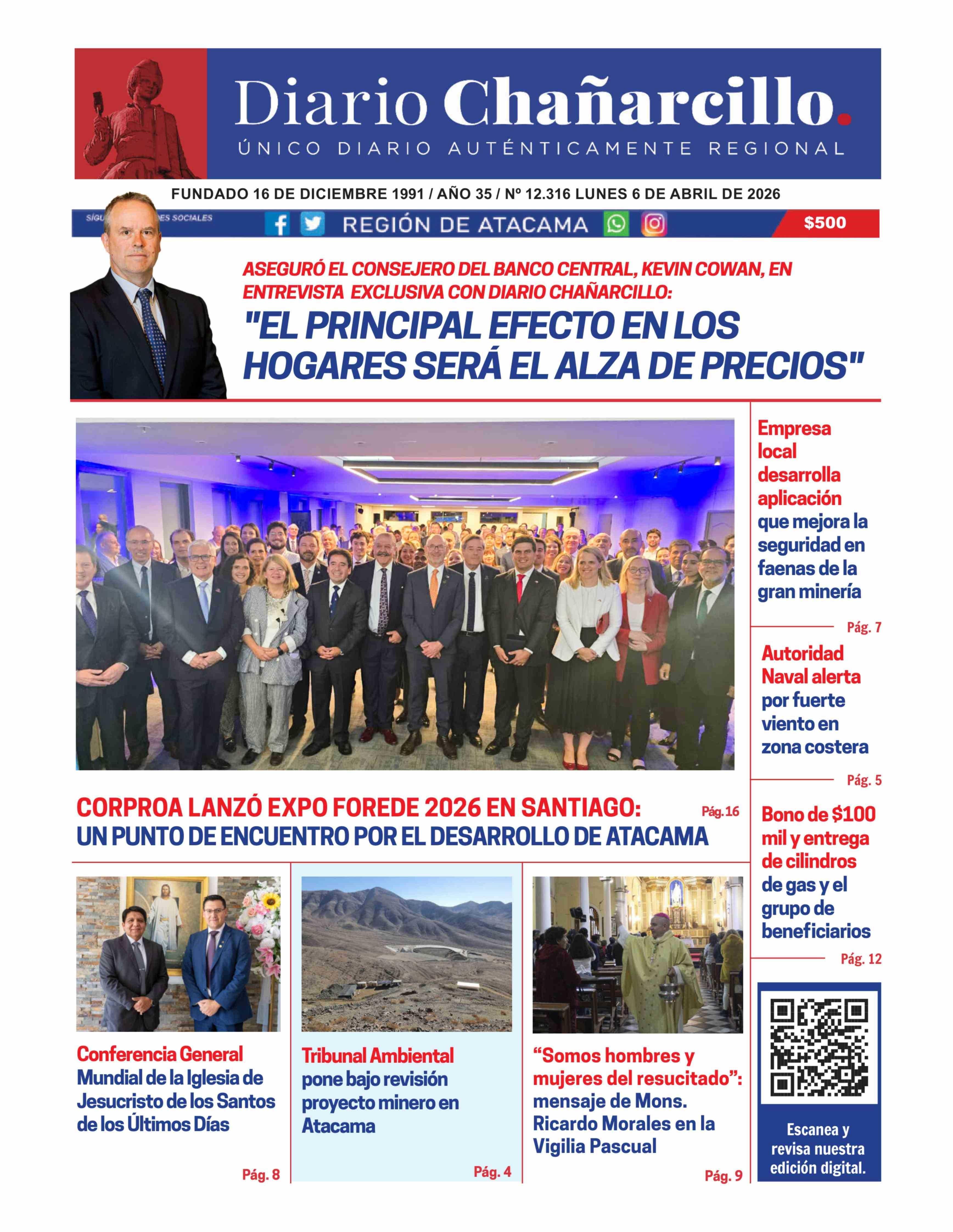 PORTADA DIARIO CHAÑARCILLO CHILE