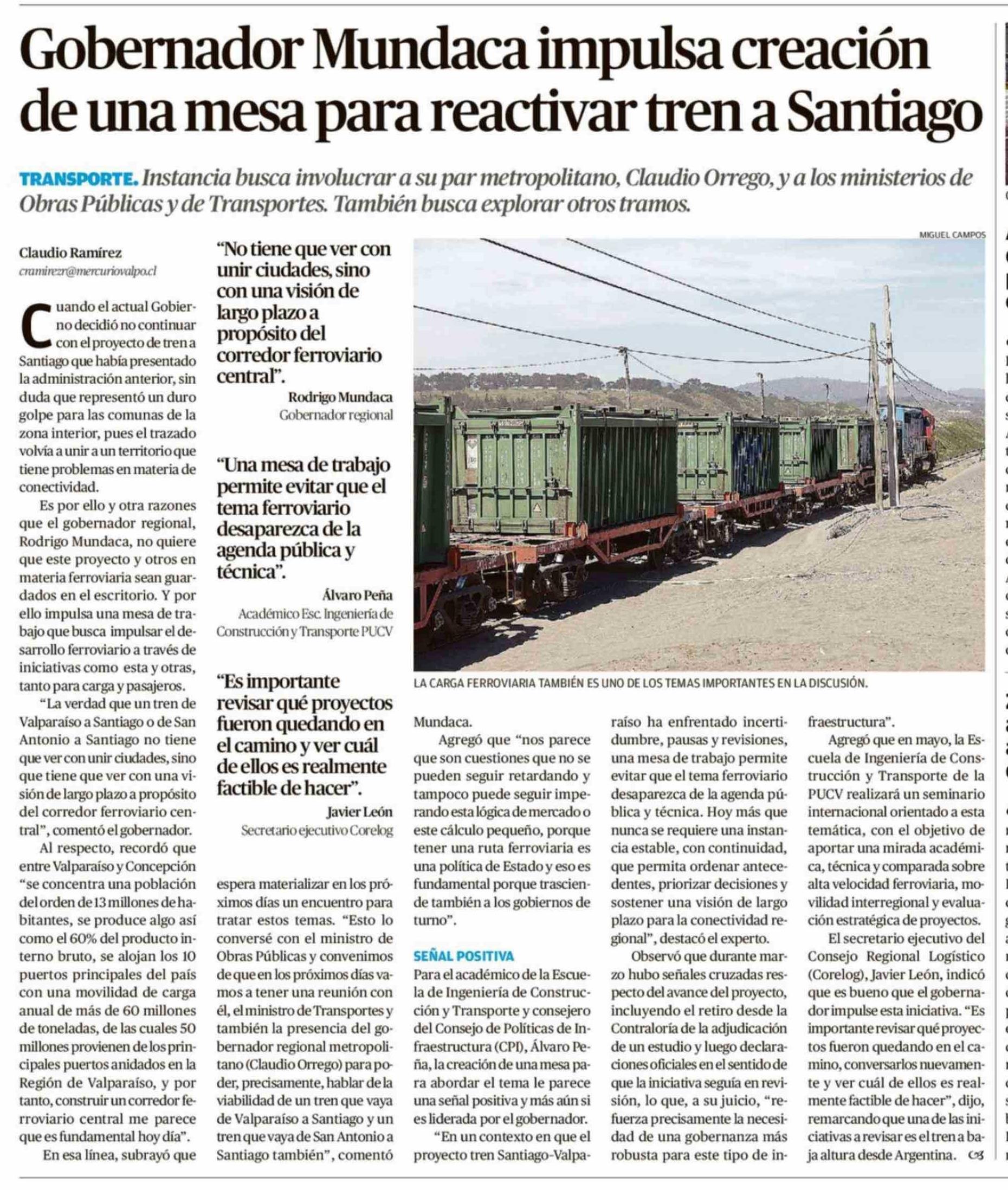 Gobernador Mundaca impulsa creación de una mesa para reactivar tren a Santiago