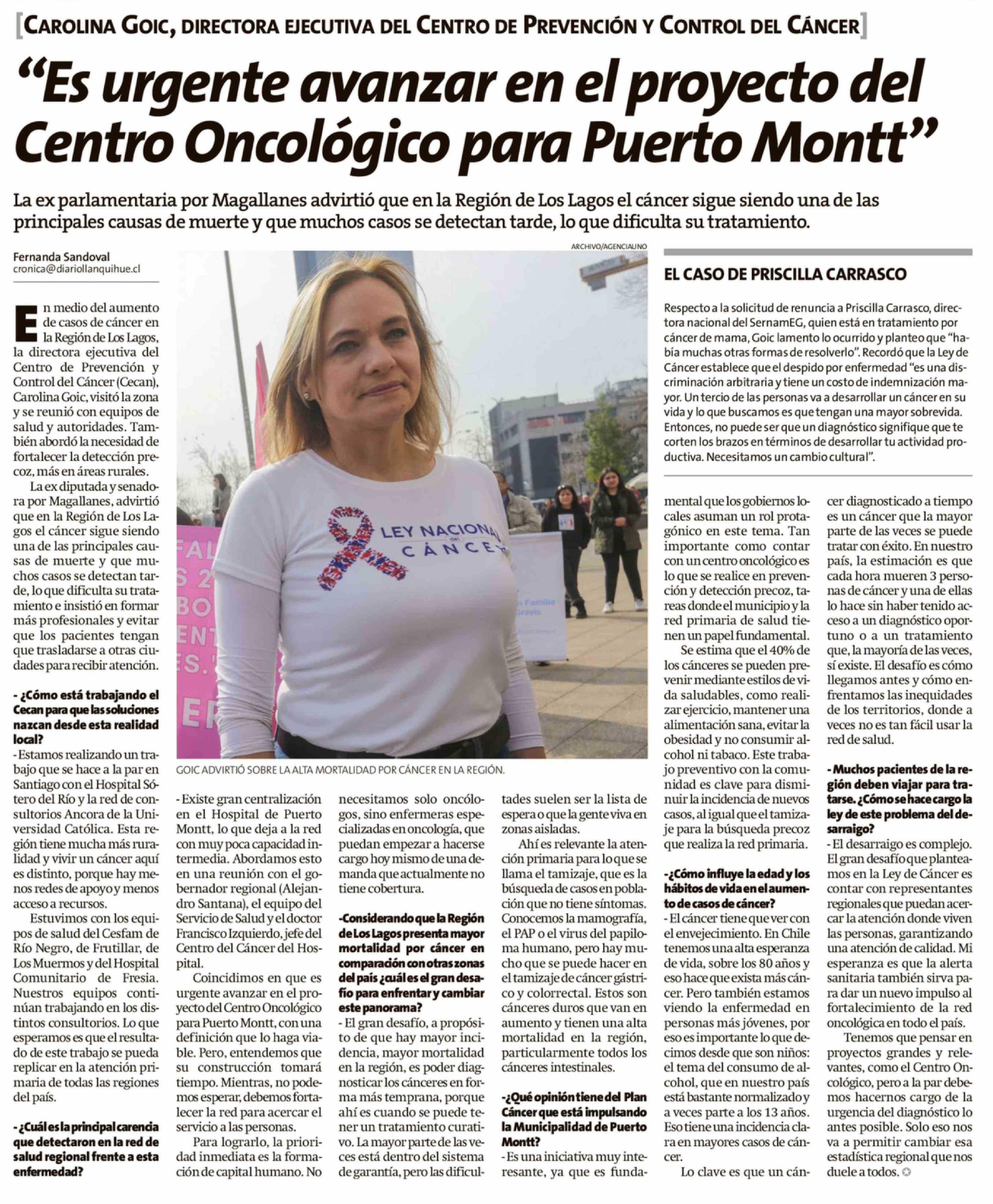 Título: "Es urgente avanzar en el proyecto del Centro Oncológico para Puerto Montt"