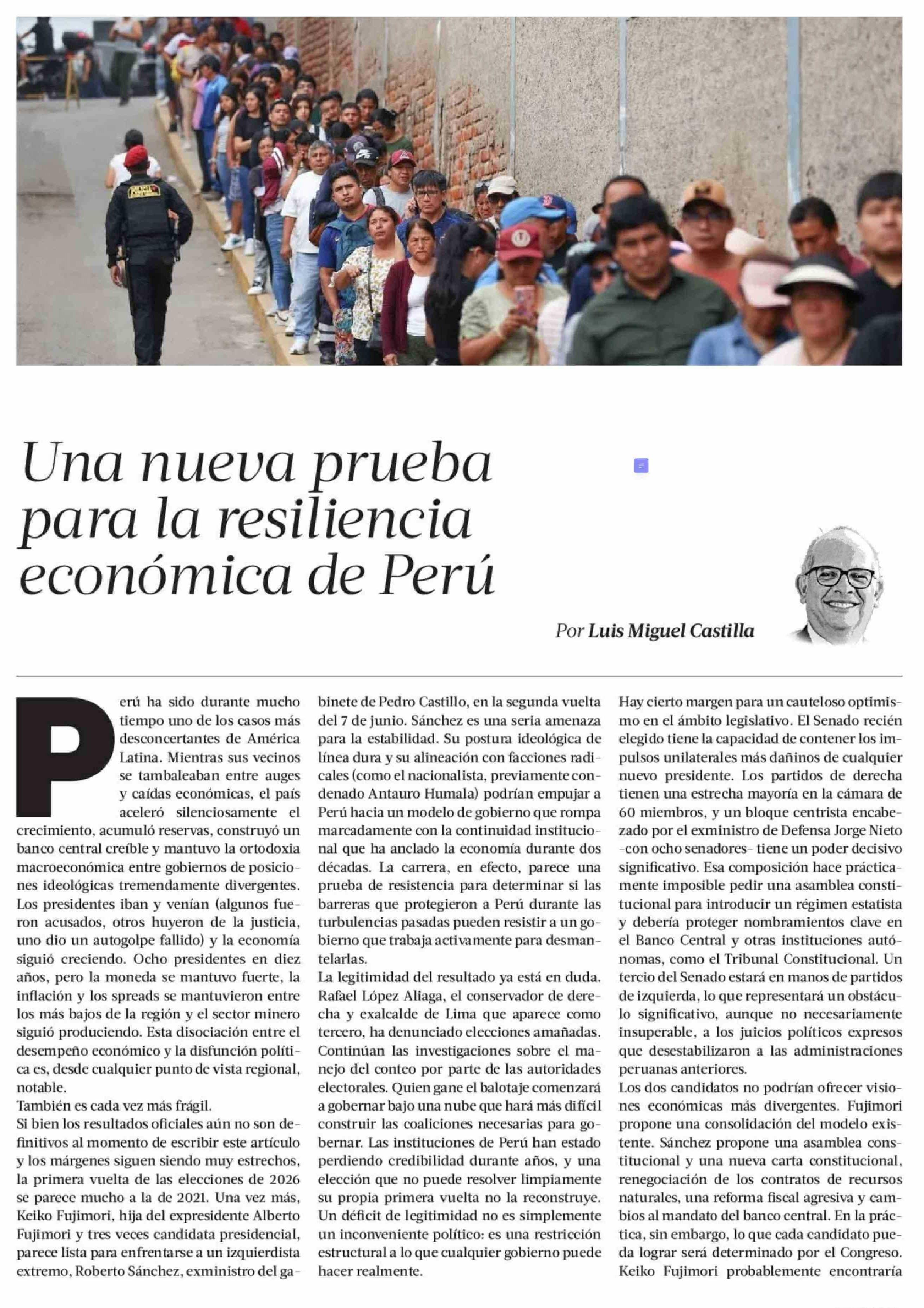 Una nueva prueba para la resiliencia económica de Perú