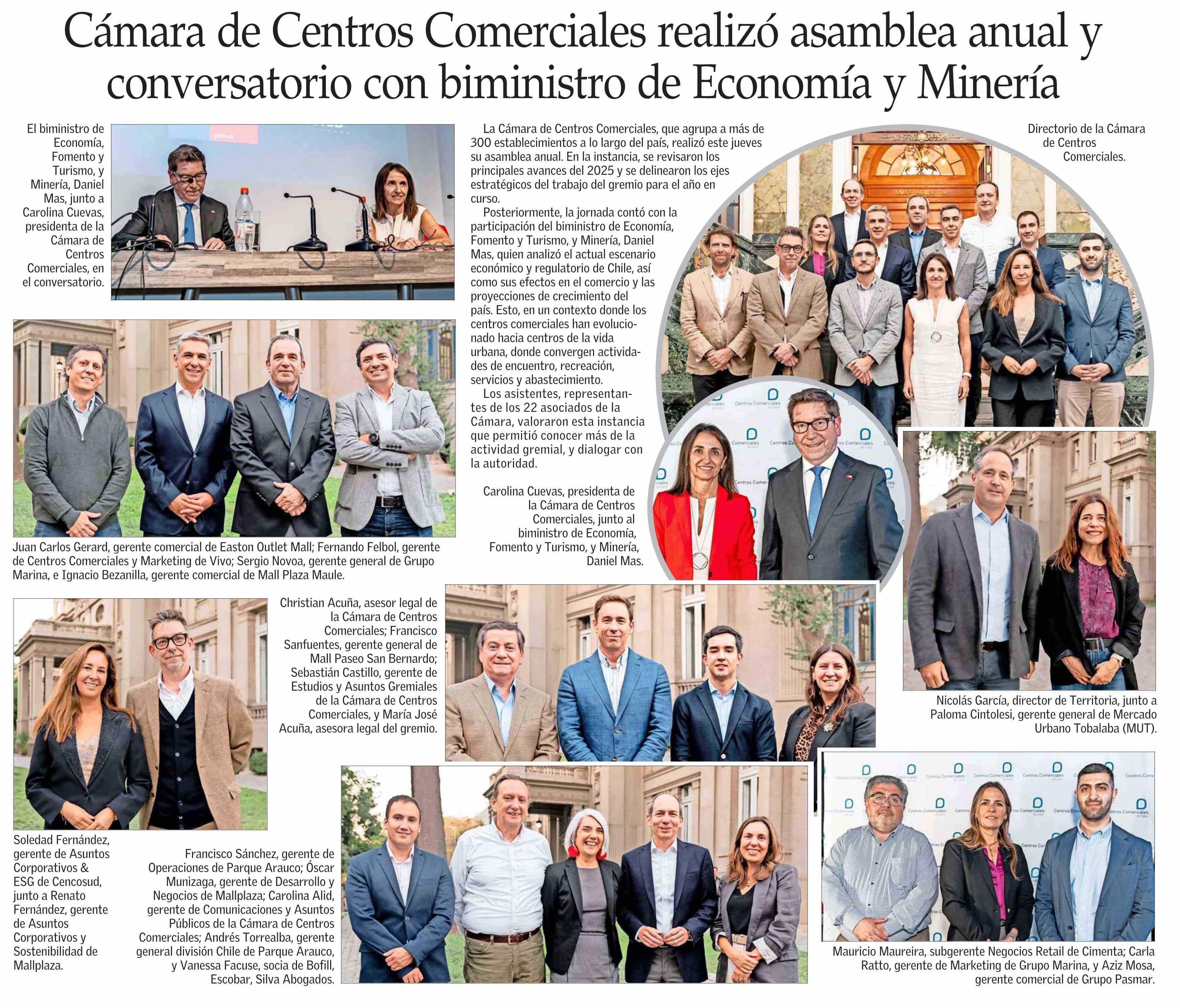 Cámara de Centros Comerciales realizó asamblea anual y conversatorio con biministro de Economía y Minería