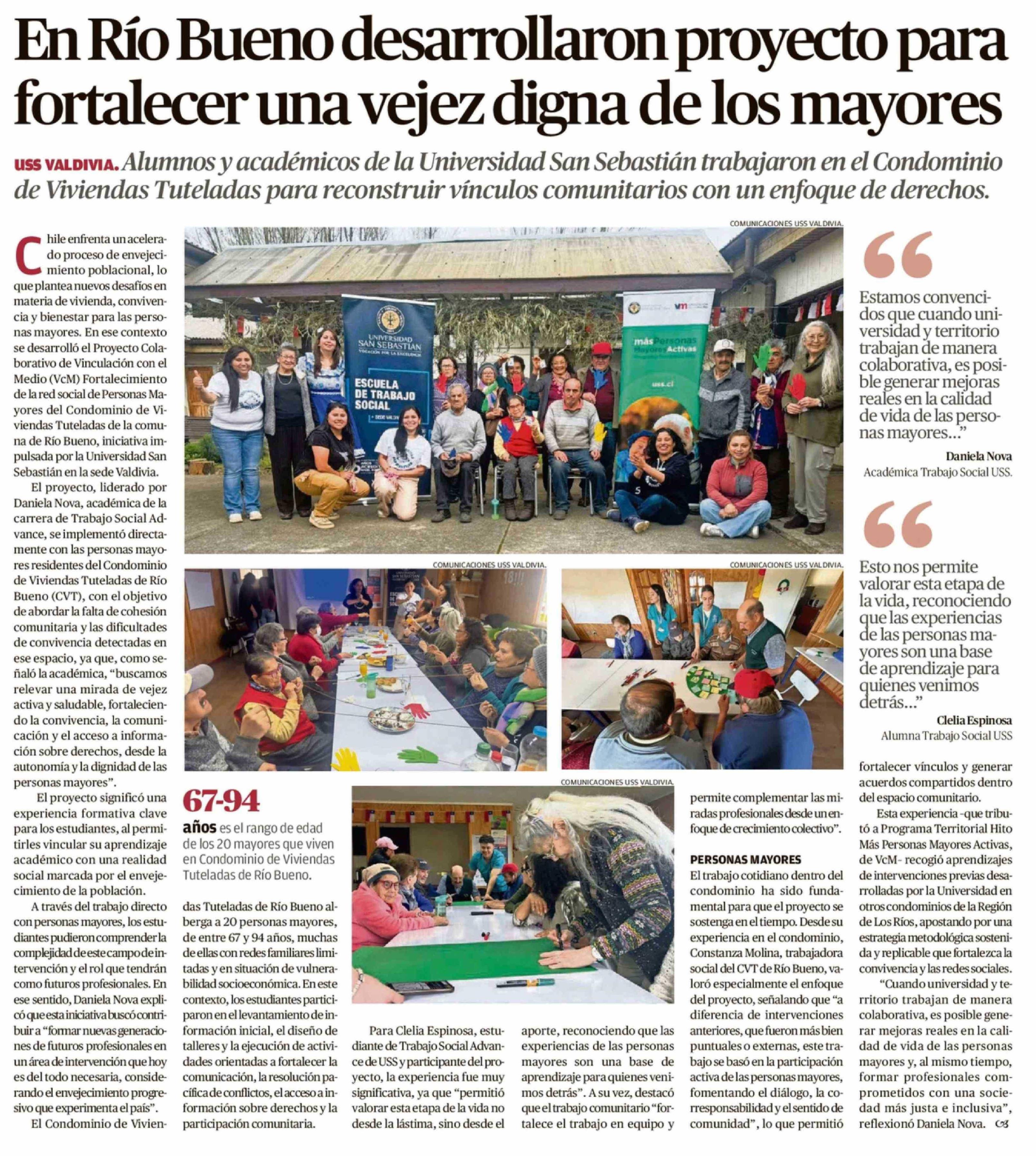 En Río Bueno desarrollaron proyecto para fortalecer una vejez digna de los mayores