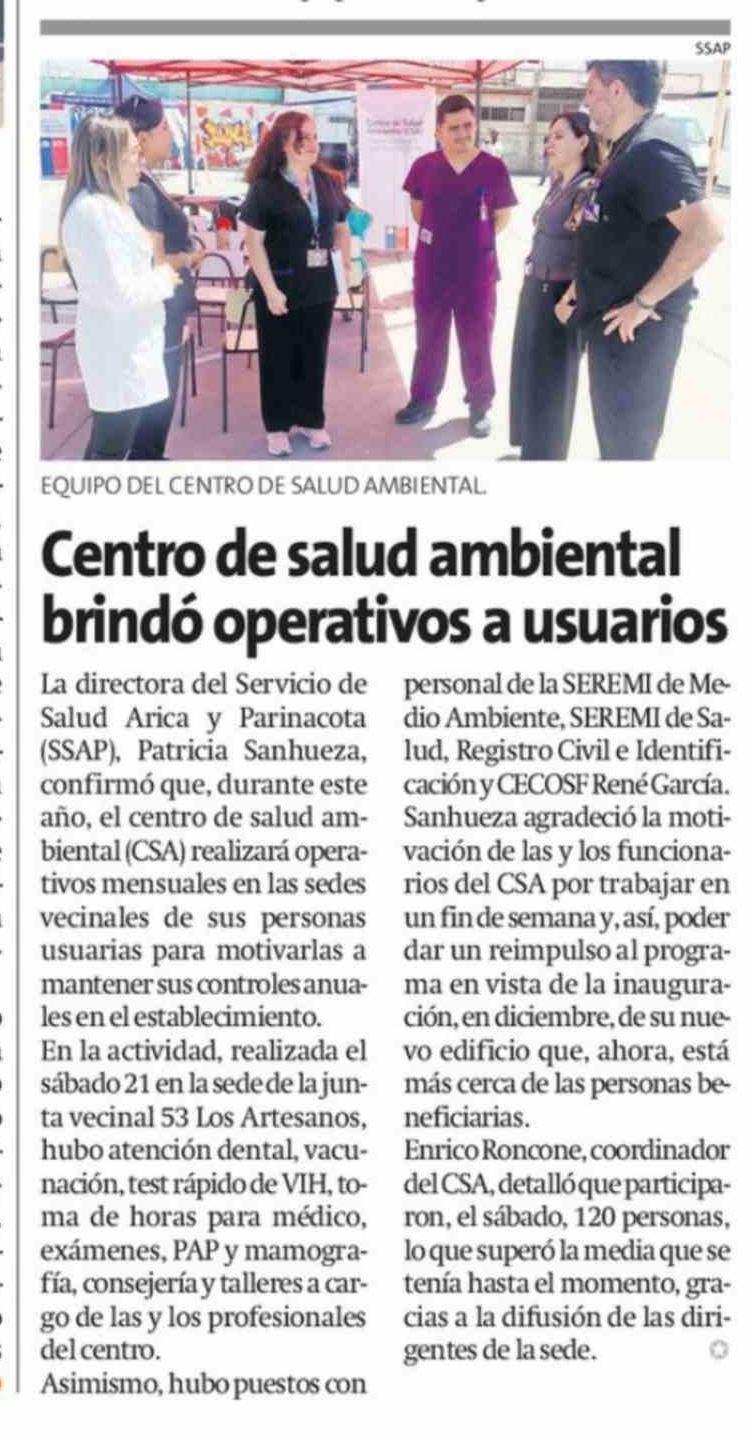 Centro de salud ambiental brindó operativos a usuarios