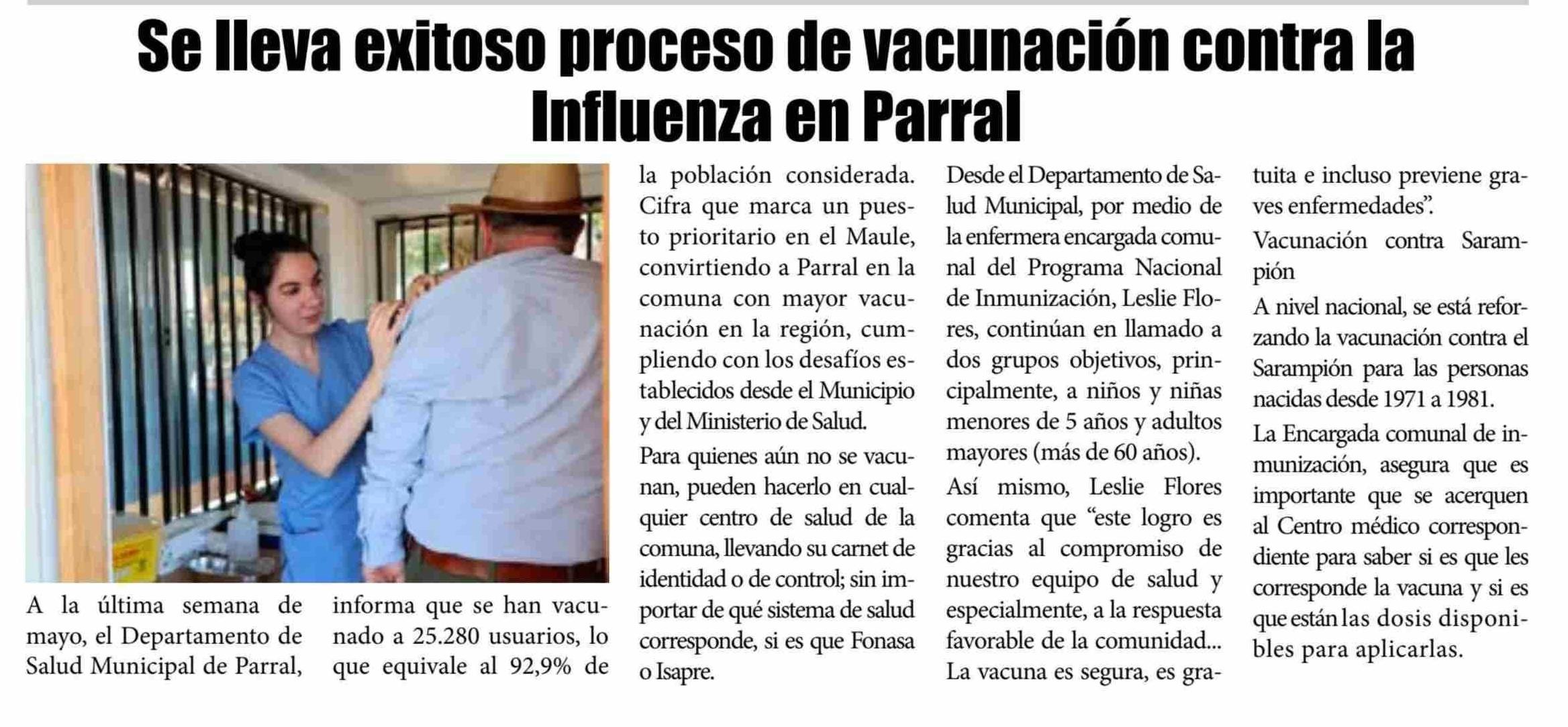 Se lleva exitoso proceso de vacunación contra la Influenza en Parral