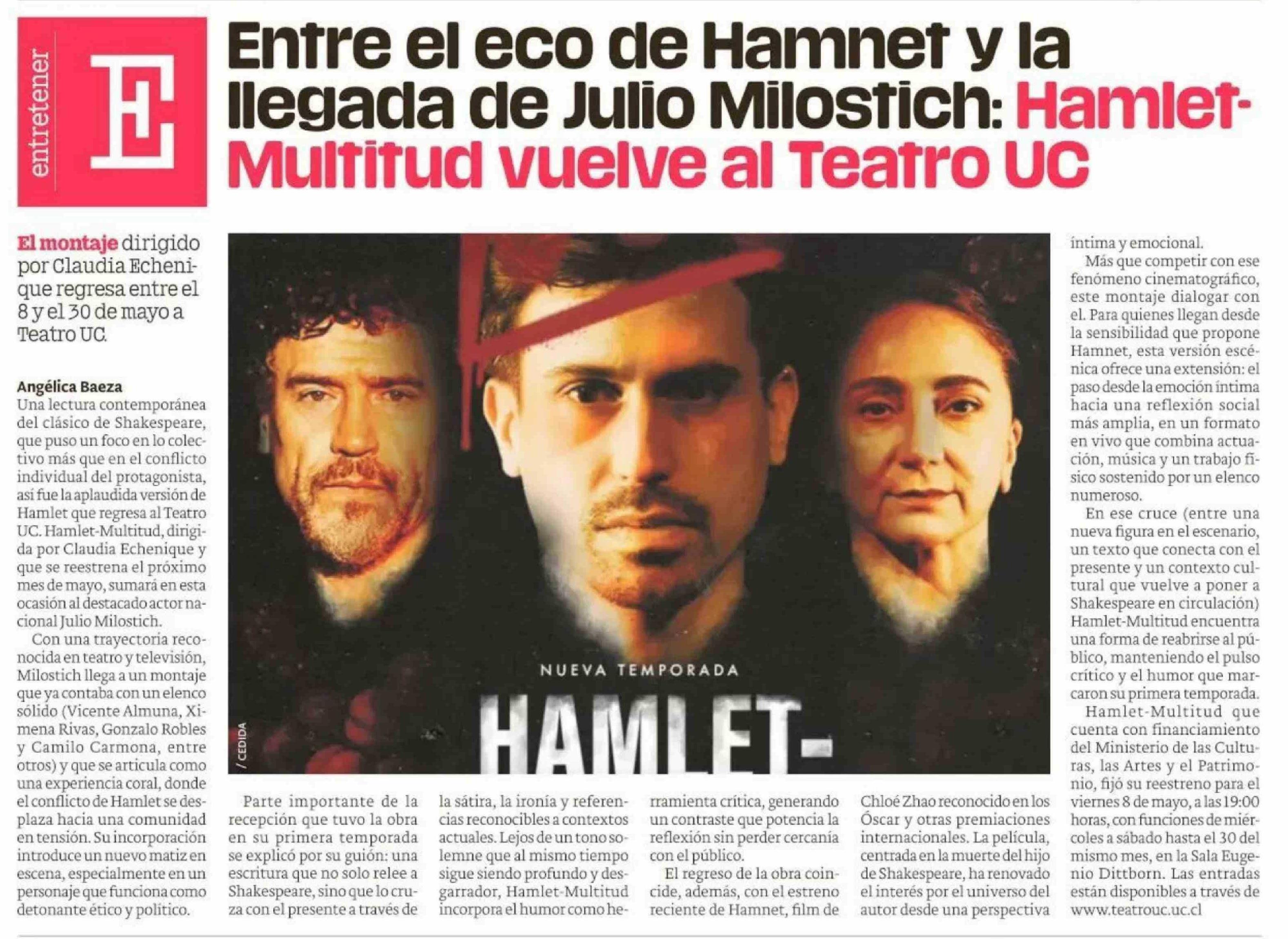 Título: Entre el eco de Hamnet y la llegada de Julio Milostich: HamletMultitud vuelve al Teatro UC
