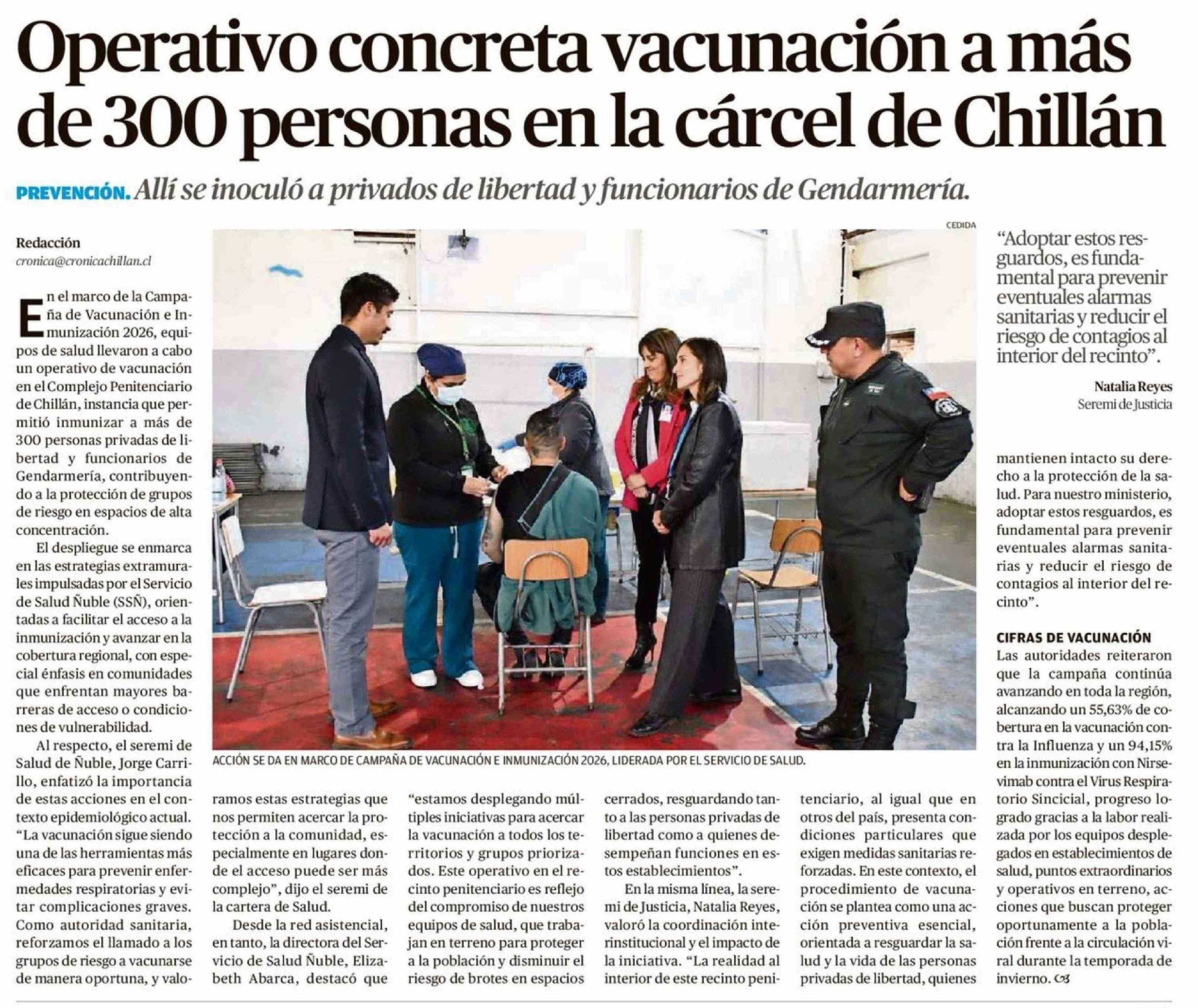 Operativo concreta vacunación a más de 300 personas en la cárcel de Chillán