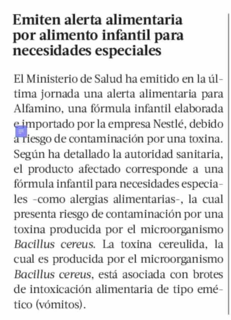 Emiten alerta alimentaria por alimento infantil para necesidades especiales