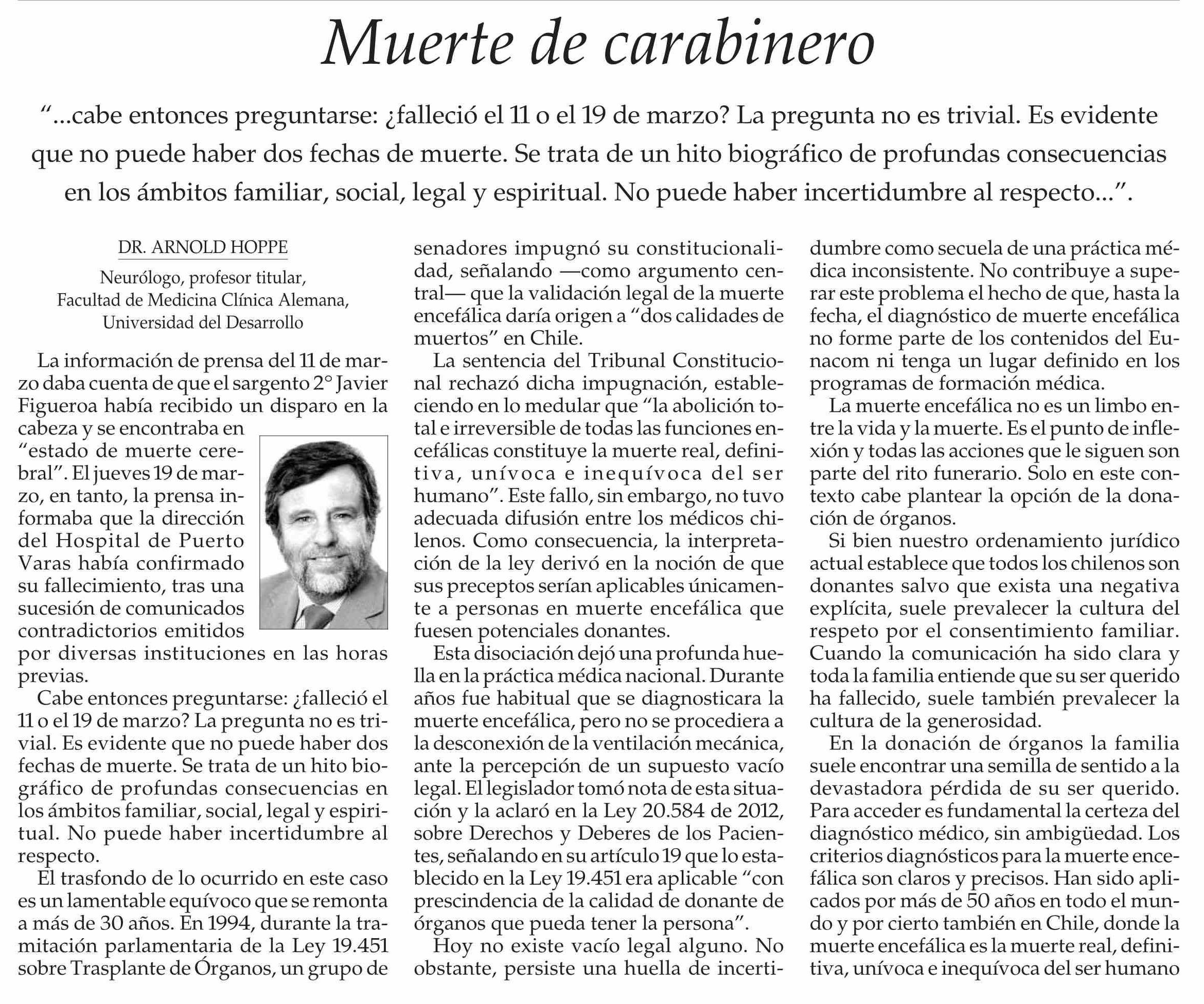 Columnas de Opinión: Muerte de carabinero