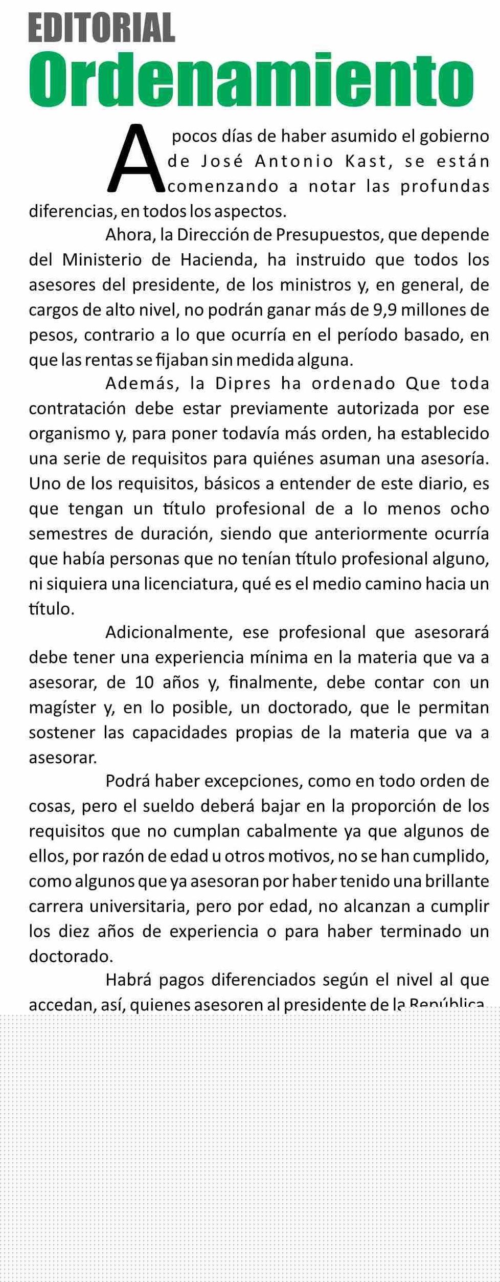 EDITORIAL: Ordenamiento