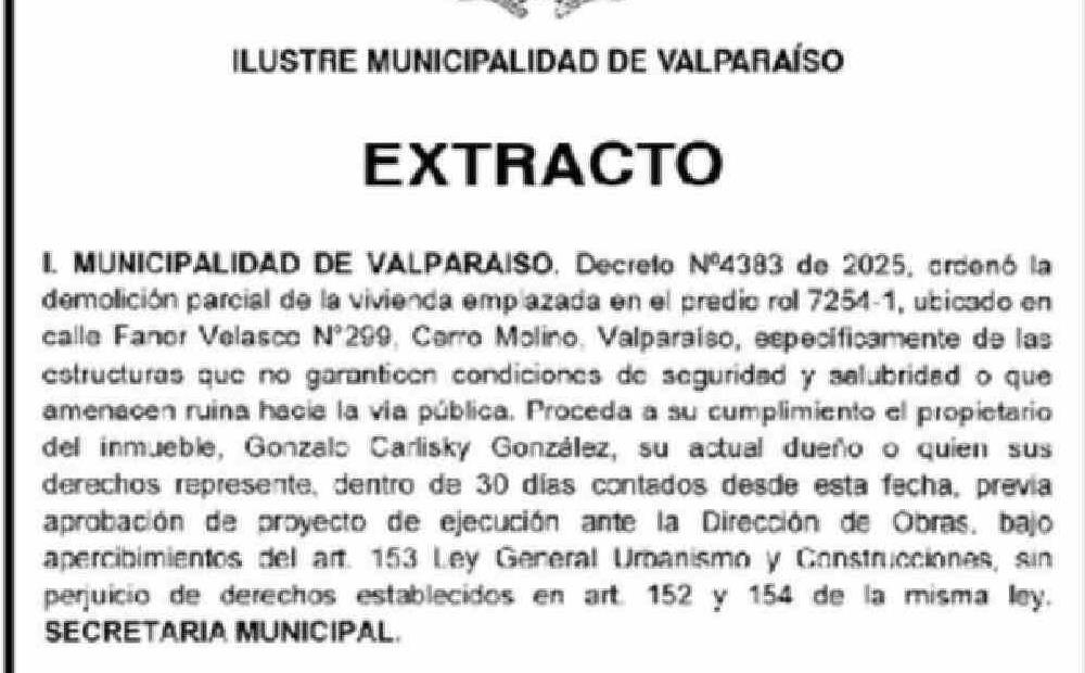 Extractos: ILUSTRE MUNICIPALIDAD DE VALPARAÍSO