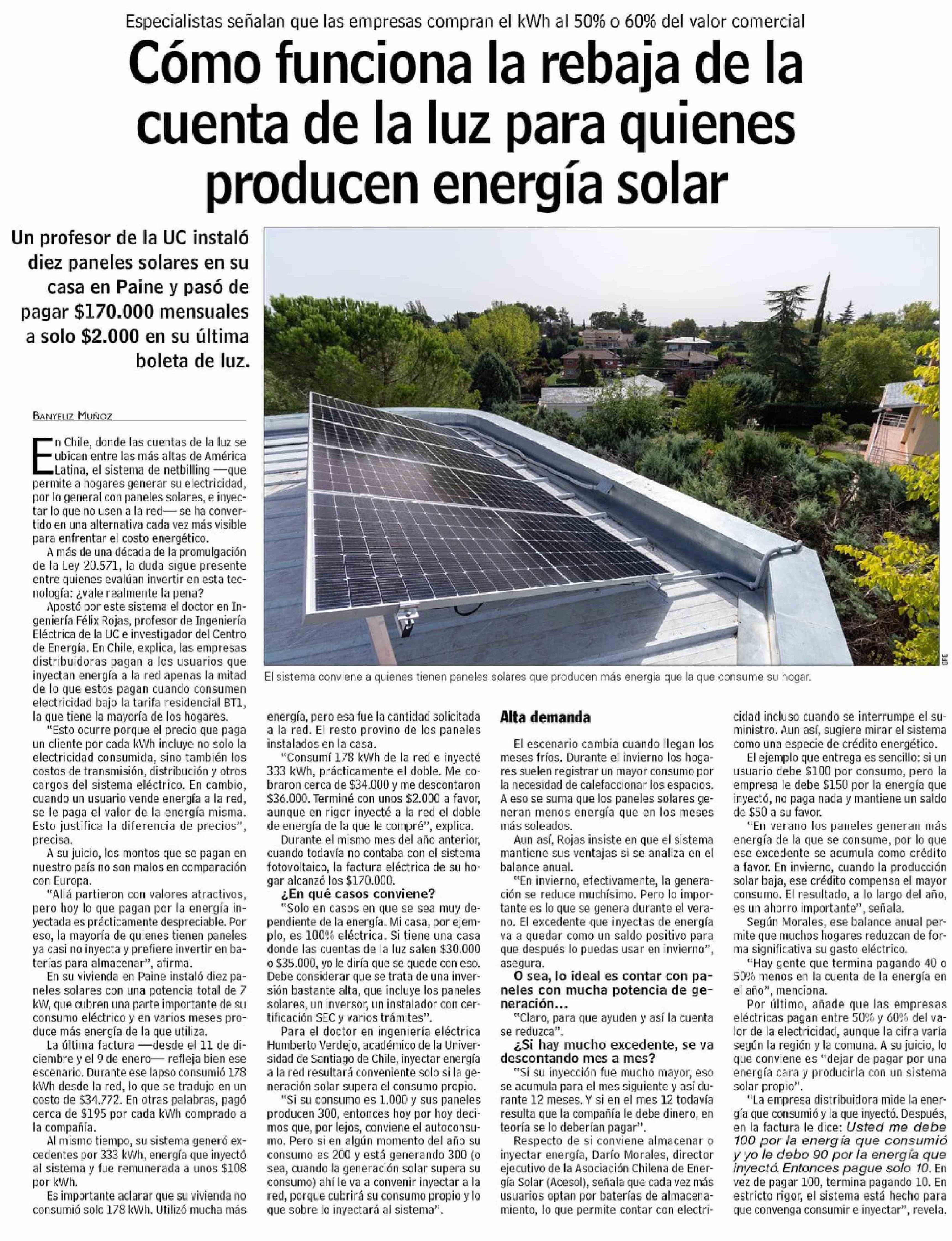 Cómo funciona la rebaja de la cuenta de la luz para quienes producen energía solar