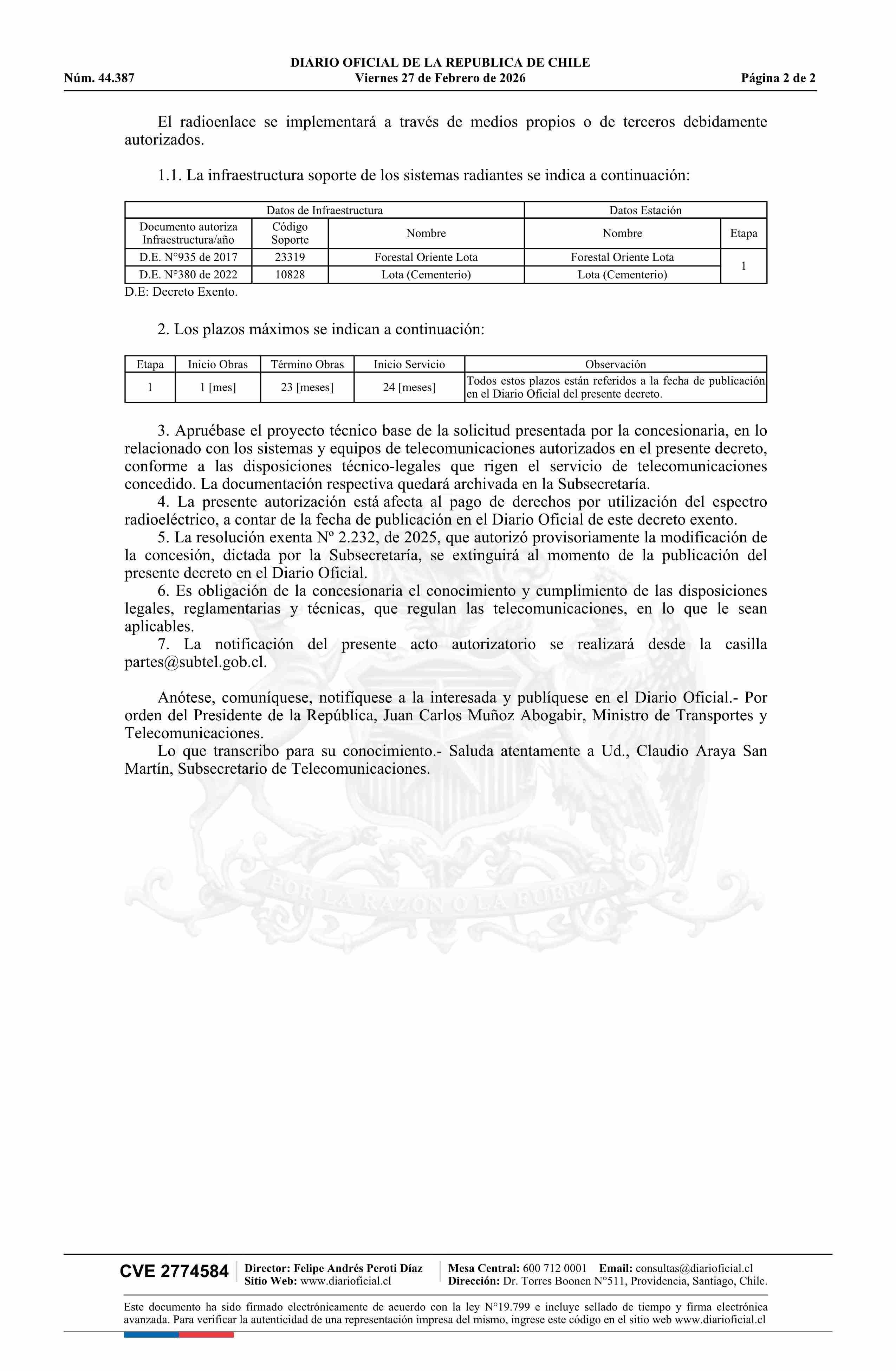 | Fuente: | Diario Oficial Edición Electrónica (Diario Oficial de Chile - 2 Normas Particulares) | Página(s): | 9-10 |