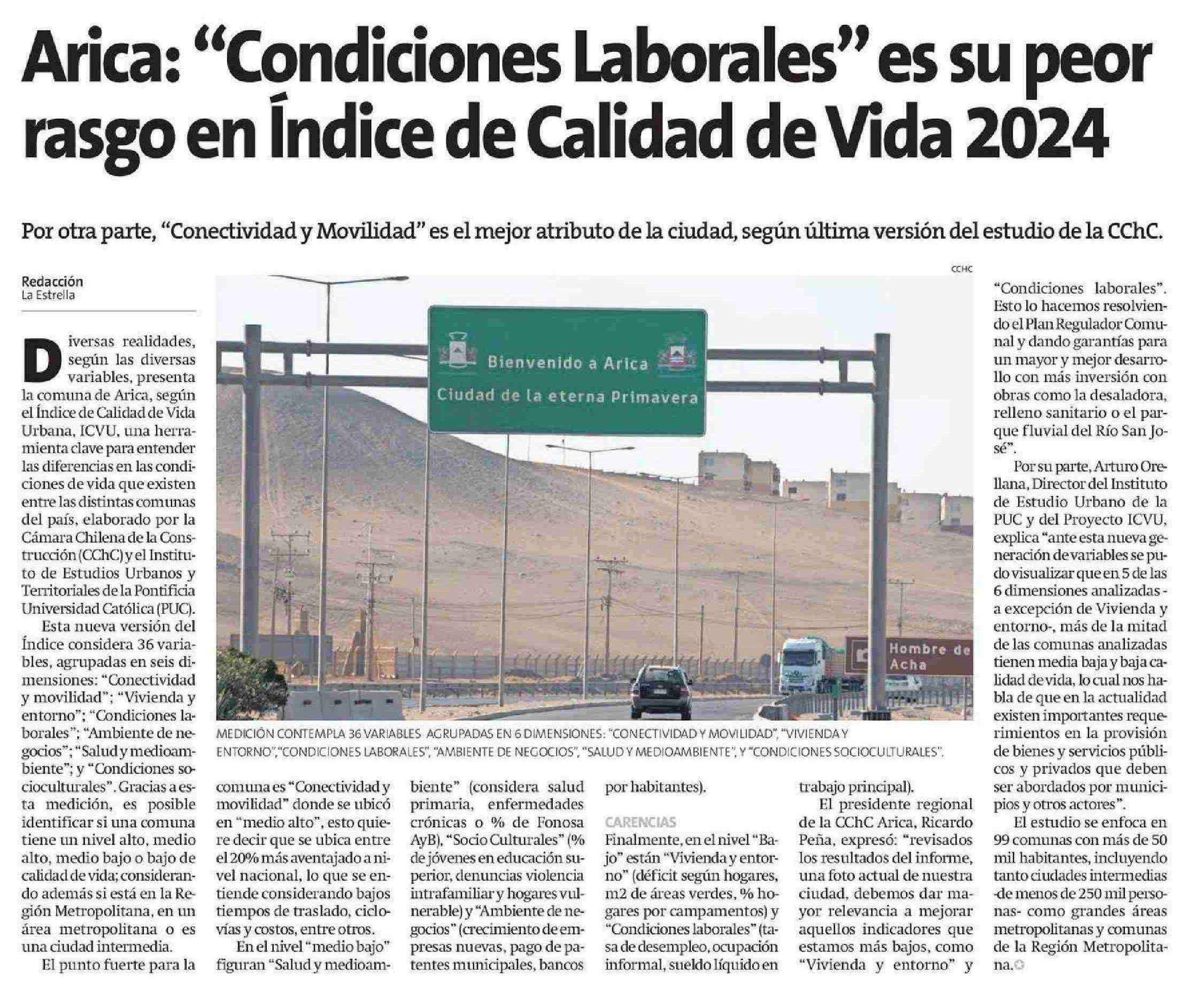 Arica: “Condiciones Laborales” es su peor rasgo en Indice de Calidad de Vida 2024