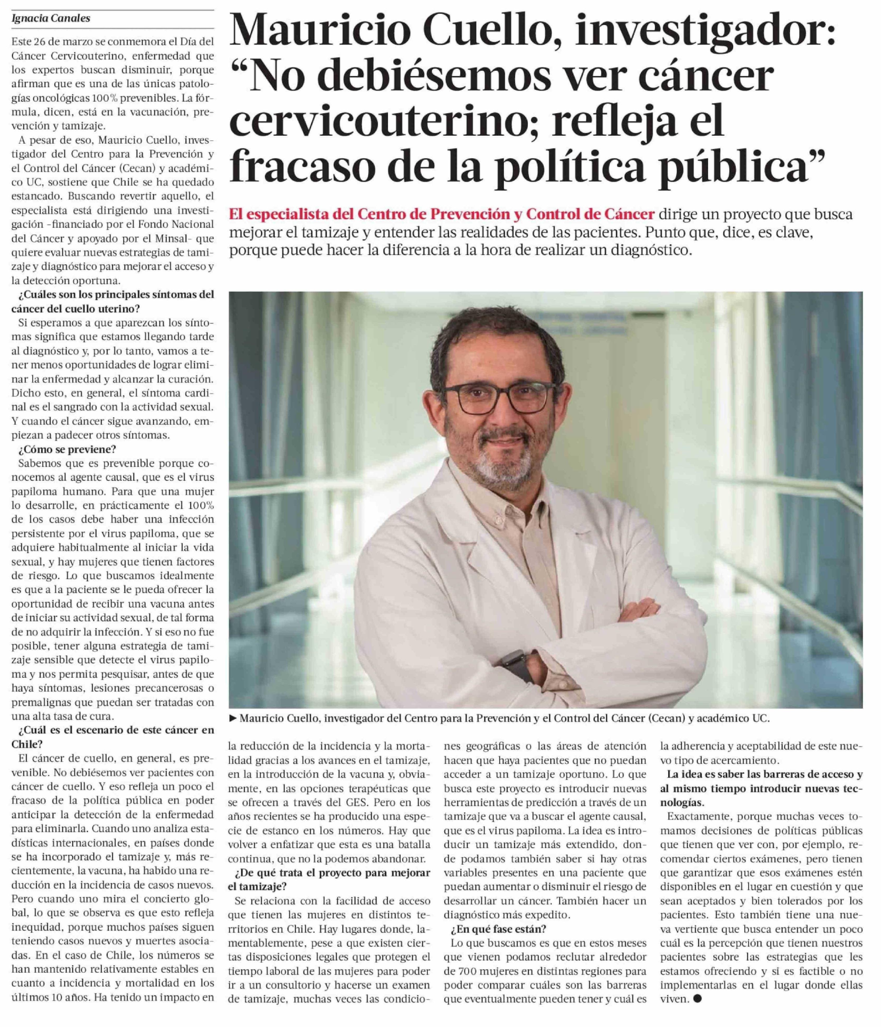 Mauricio Cuello, investigador: "No debiésemos ver cáncer cervicouterino; refleja el fracaso de la política pública"