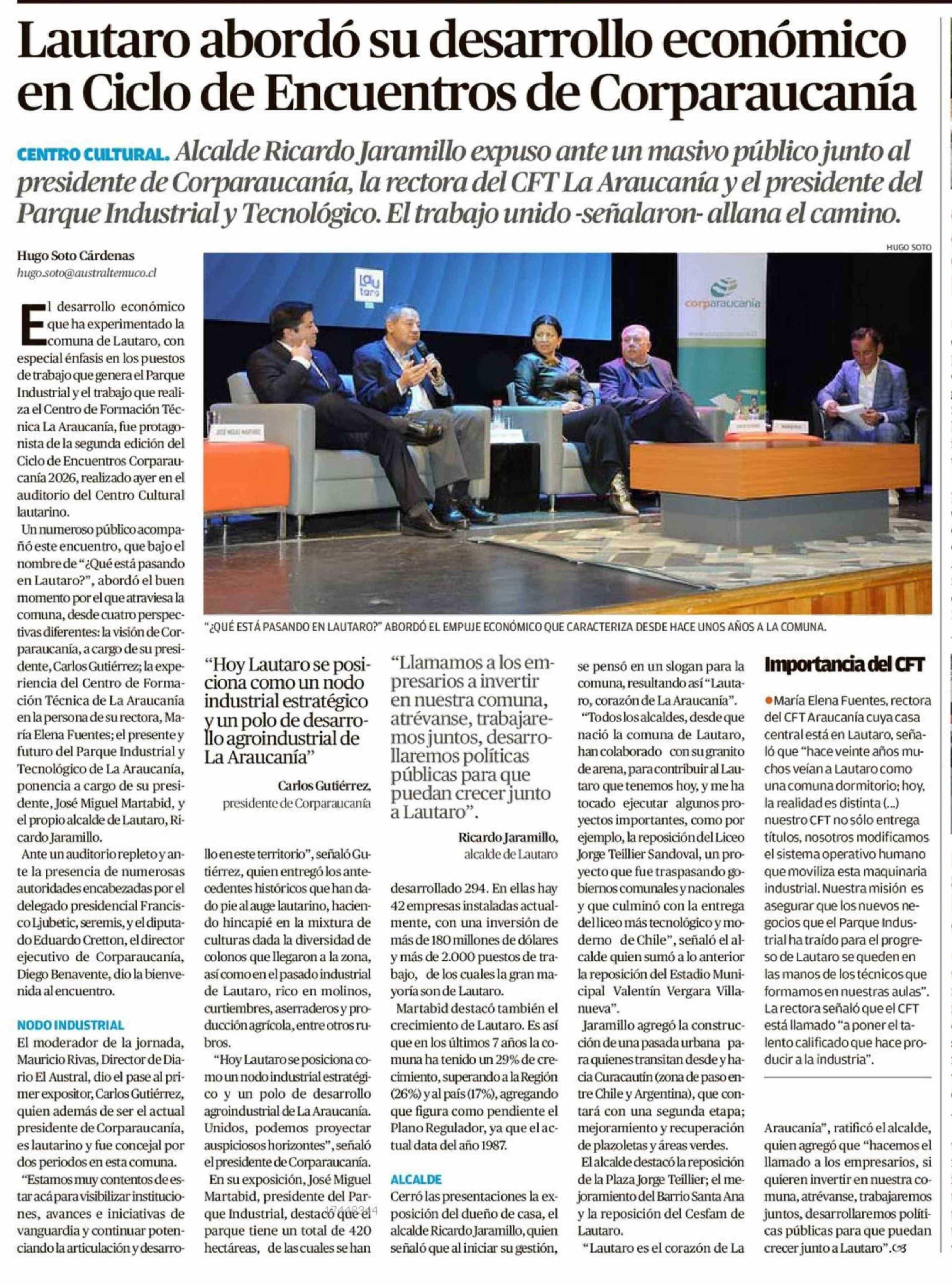Lautaro abordó su desarrollo económico en Ciclo de Encuentros de Corparaucanía