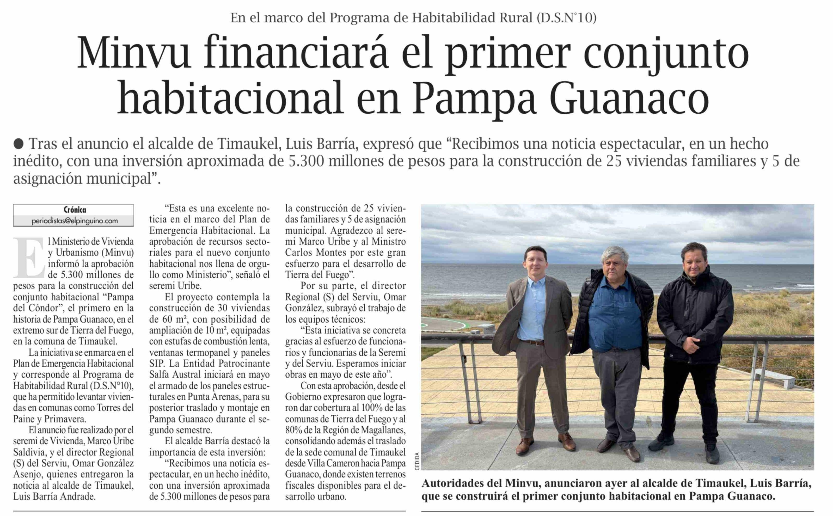Minvu financiará el primer conjunto habitacional en Pampa Guanaco
