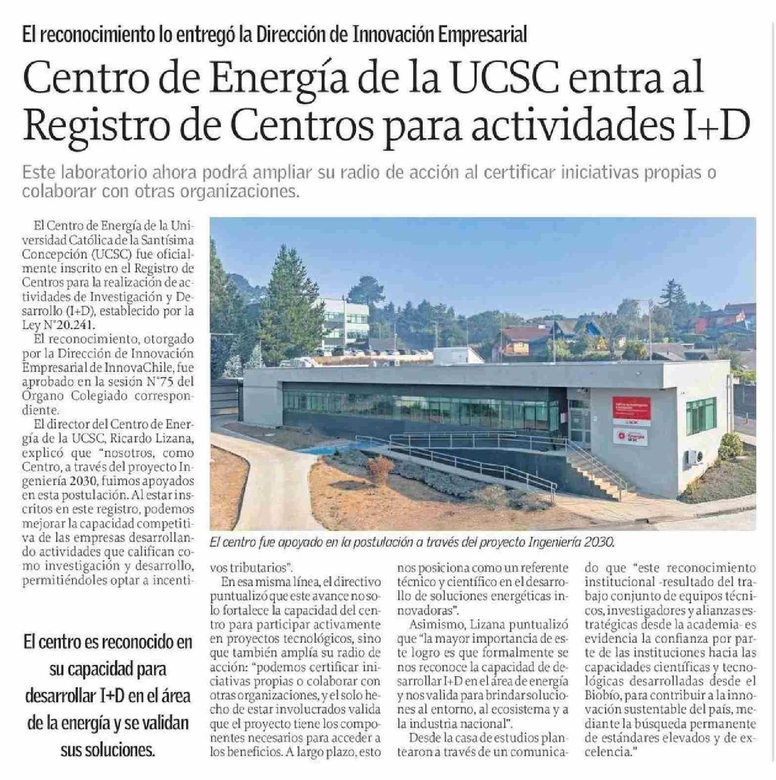 Centro de Energía de la UCSC entra al Registro de Centros para actividades I+D