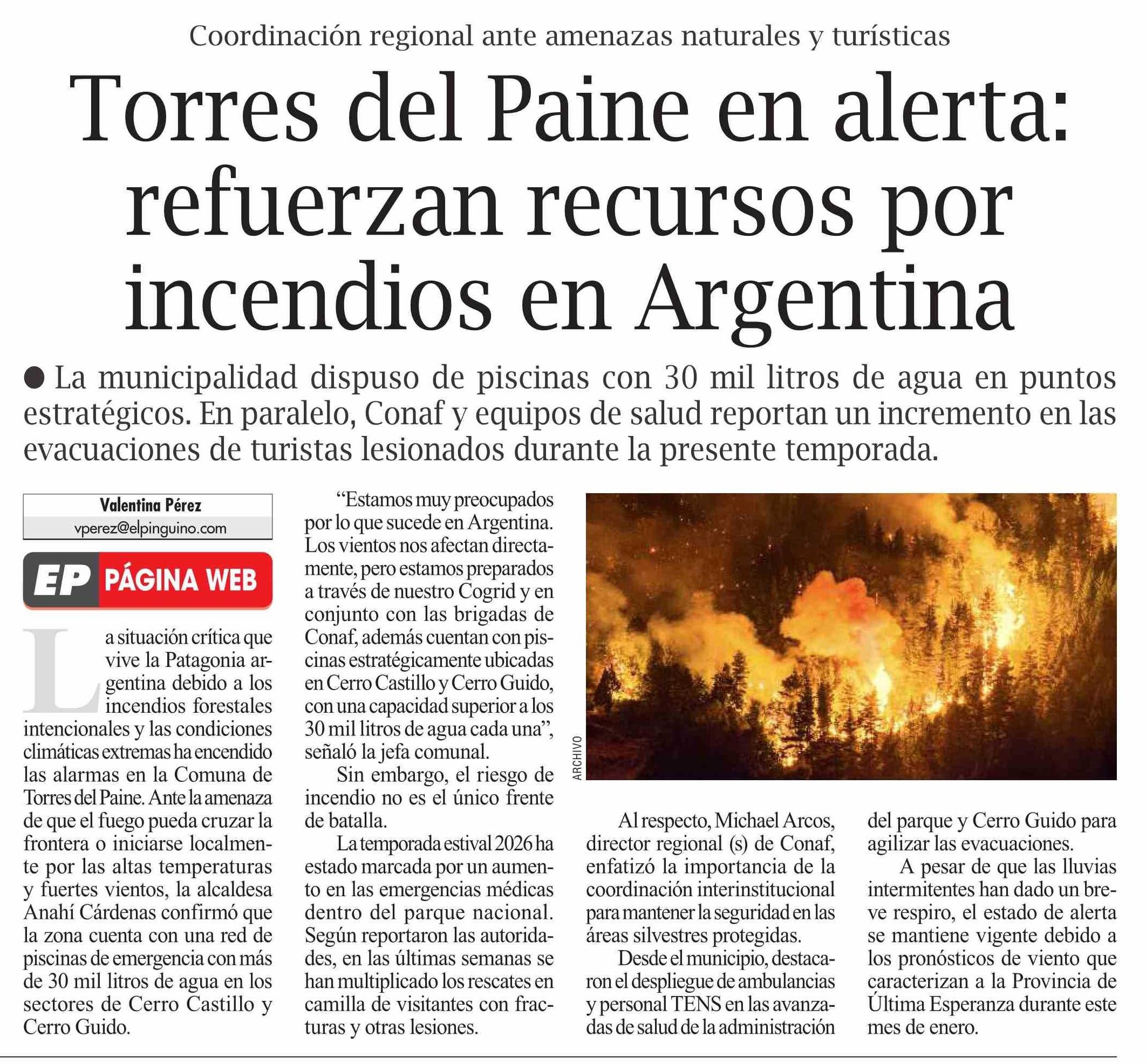 Torres del Paine en alerta: refuerzan recursos por incendios en Argentina
