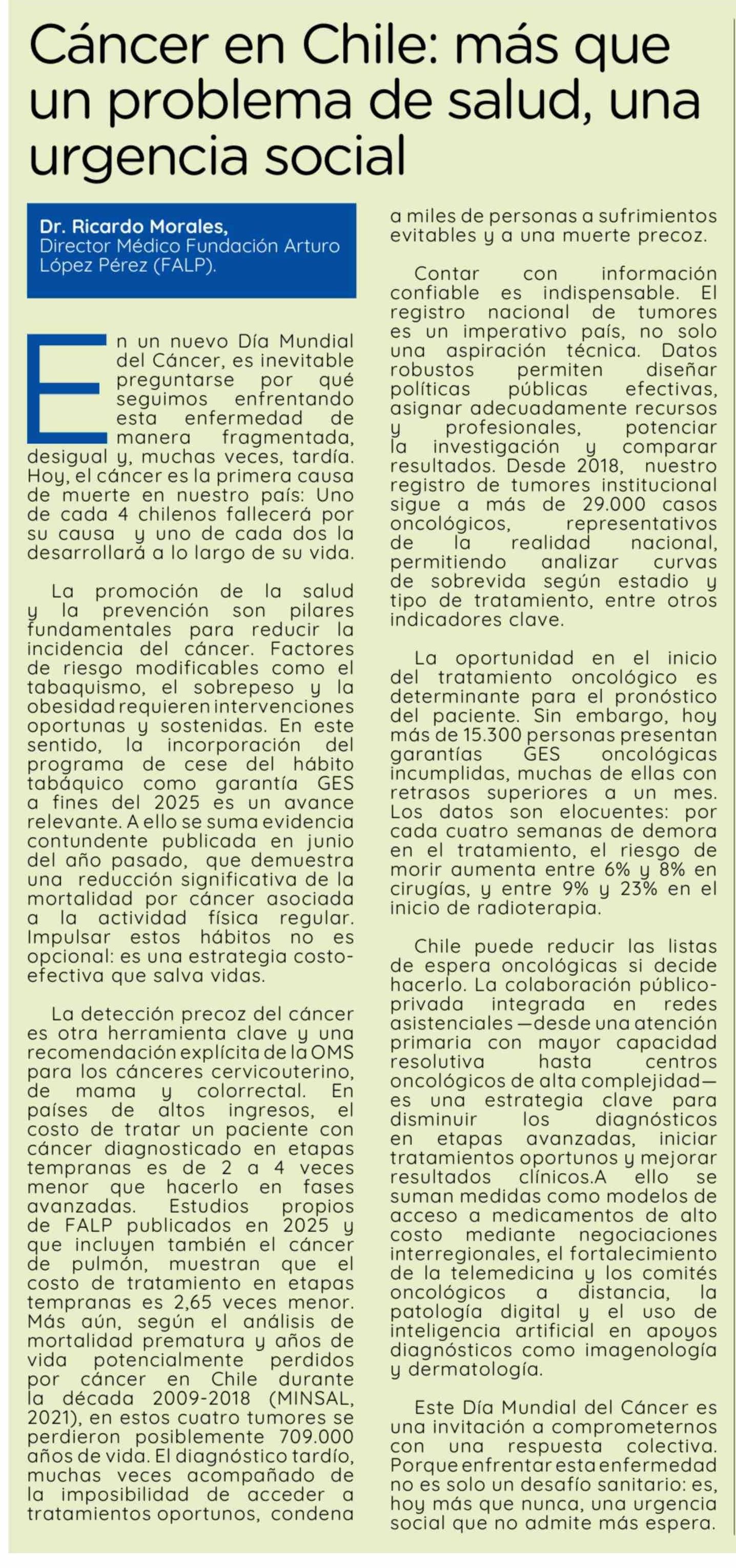 Columnas de Opinión: Cáncer en Chile: más que un problema de salud, una urgencia social