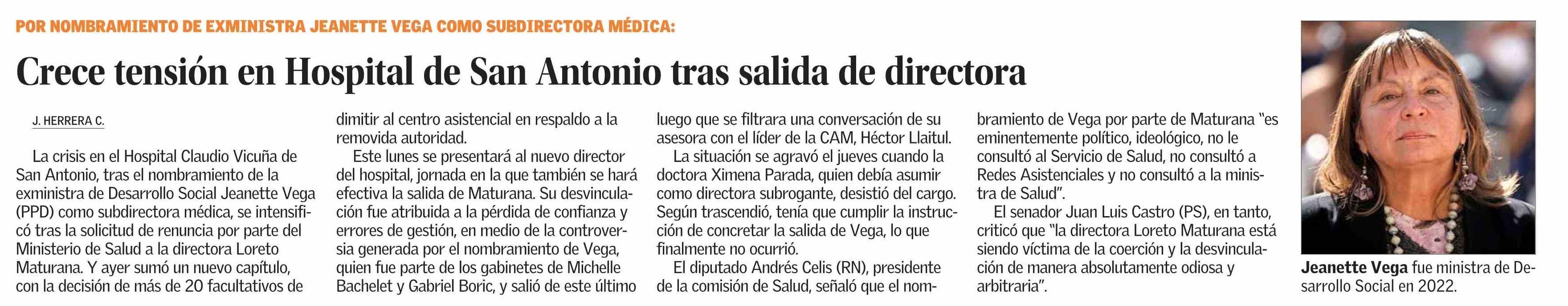Título: Crece tensión en Hospital de San Antonio tras salida de directora
