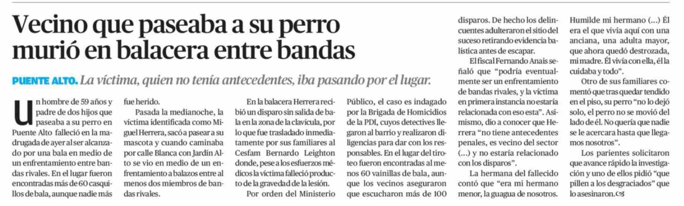 Vecino que paseaba a su perro murió en balacera entre bandas
