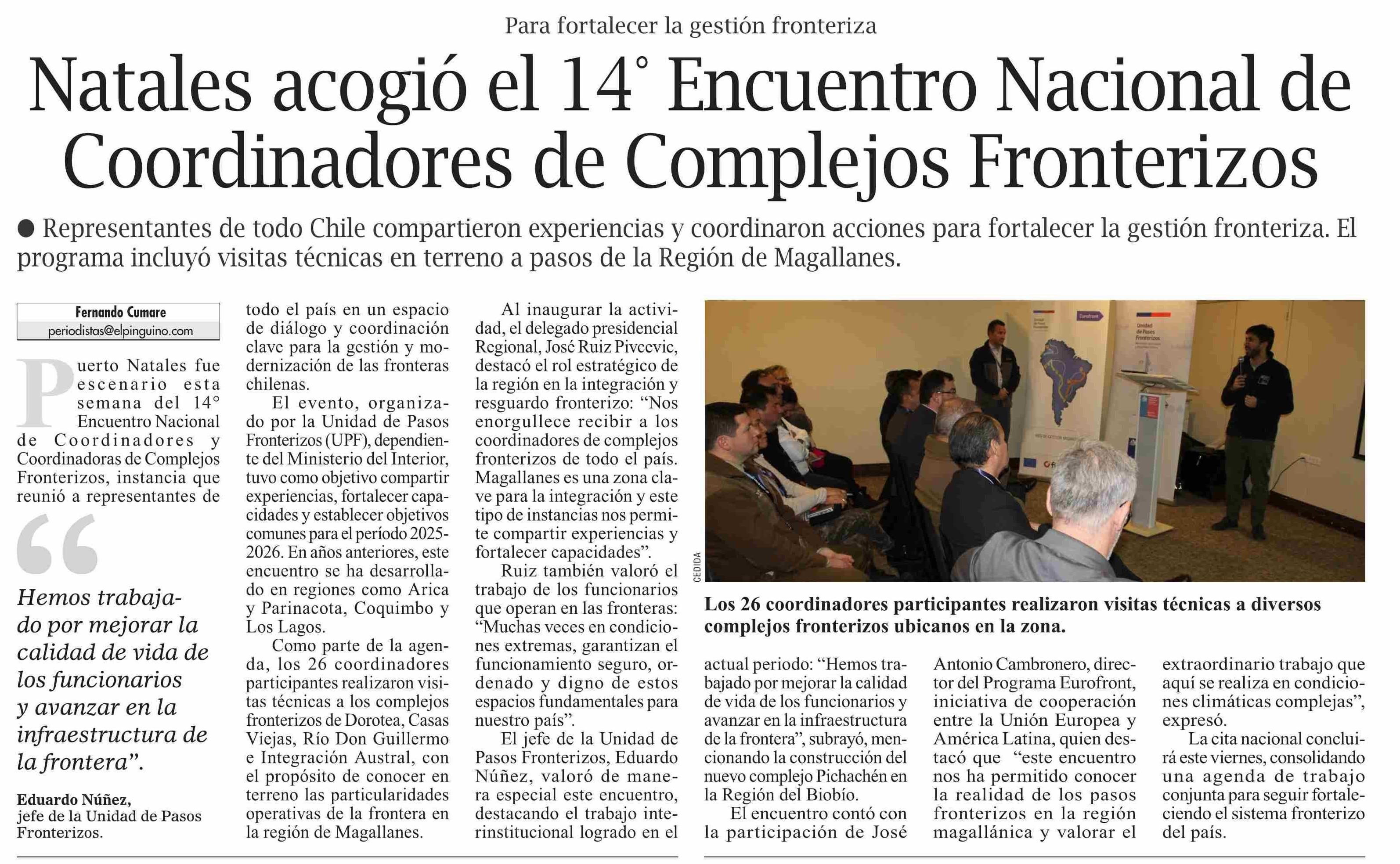 Natales acogió el 14° Encuentro Nacional de Coordinadores de Complejos Fronterizos