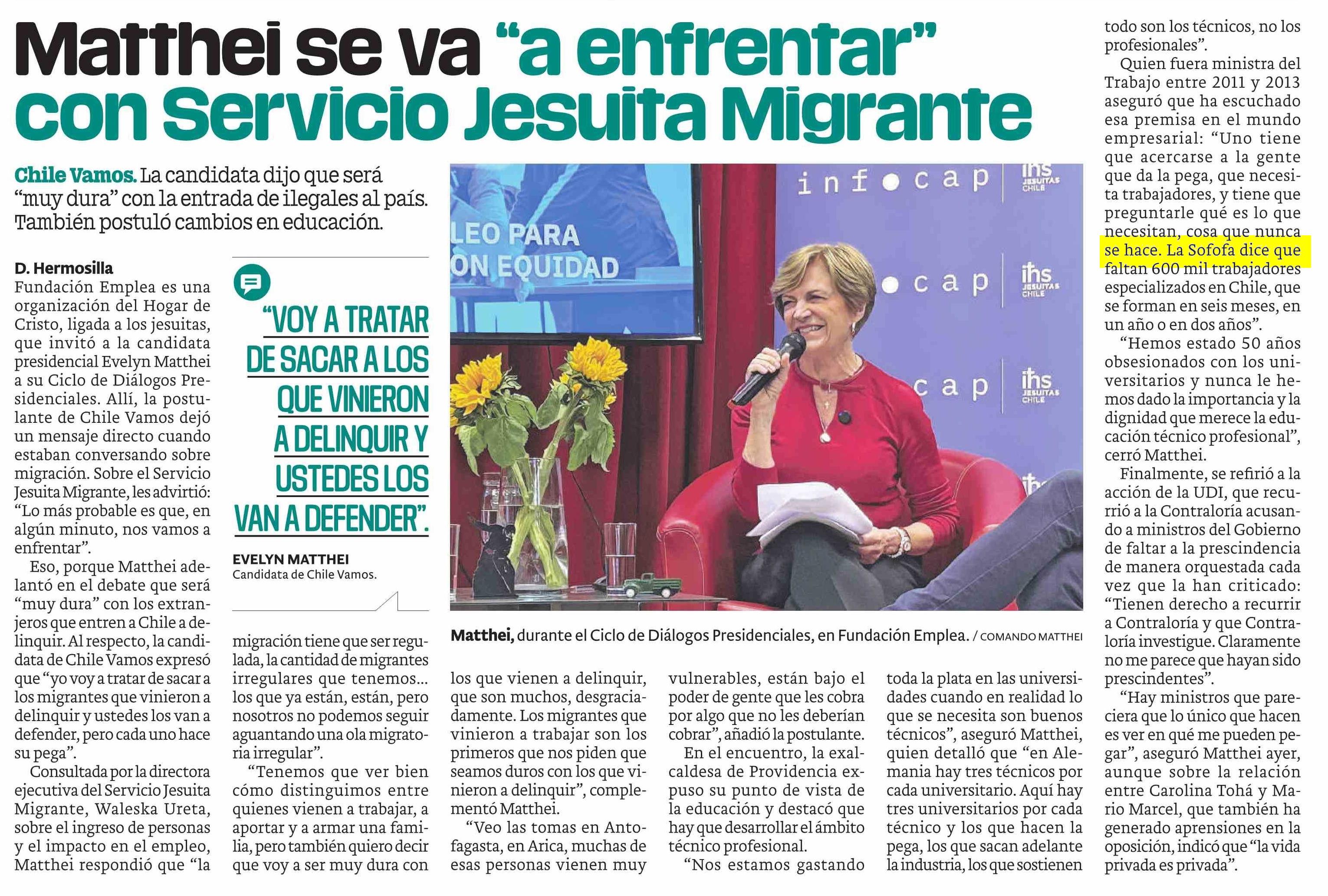 Matthei se va “a enfrentar” con Servicio Jesuita Migrante