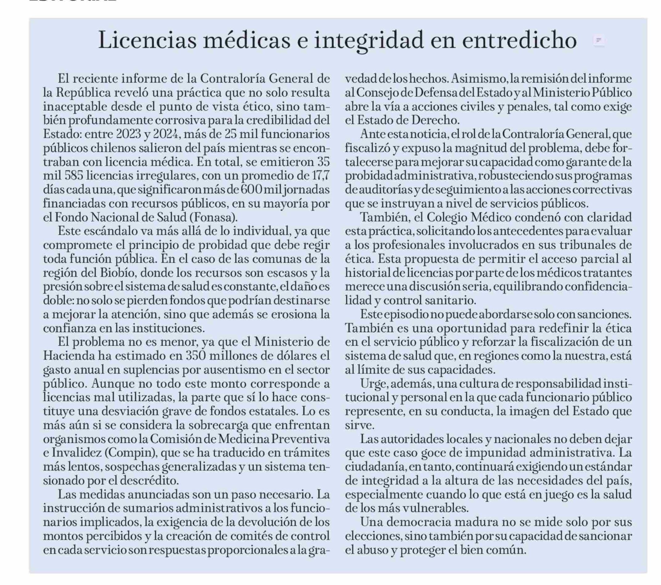 EDITORIAL: Licencias médicas e integridad en entredicho