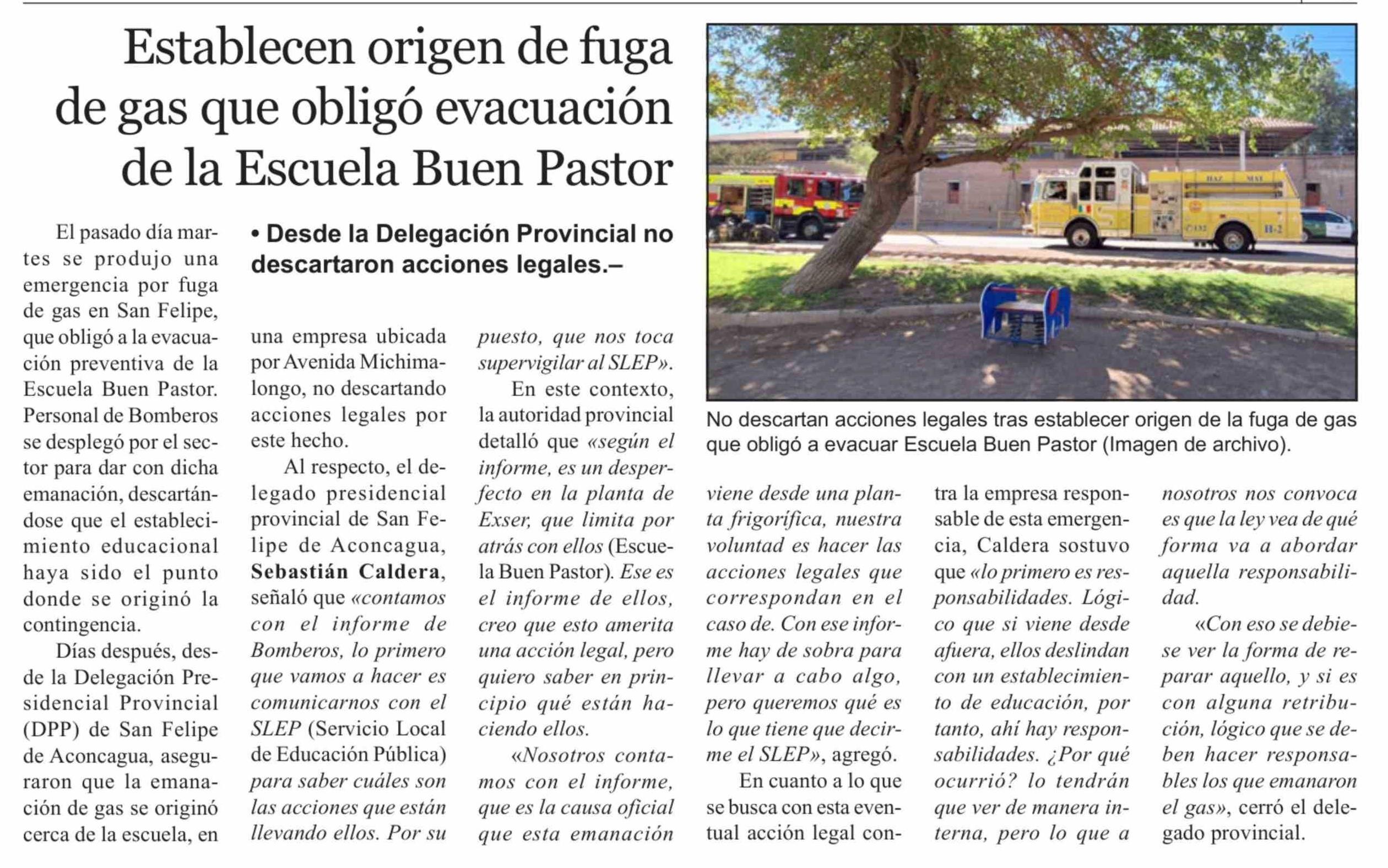 Establecen origen de fuga de gas que obligó evacuación de la Escuela Buen Pastor