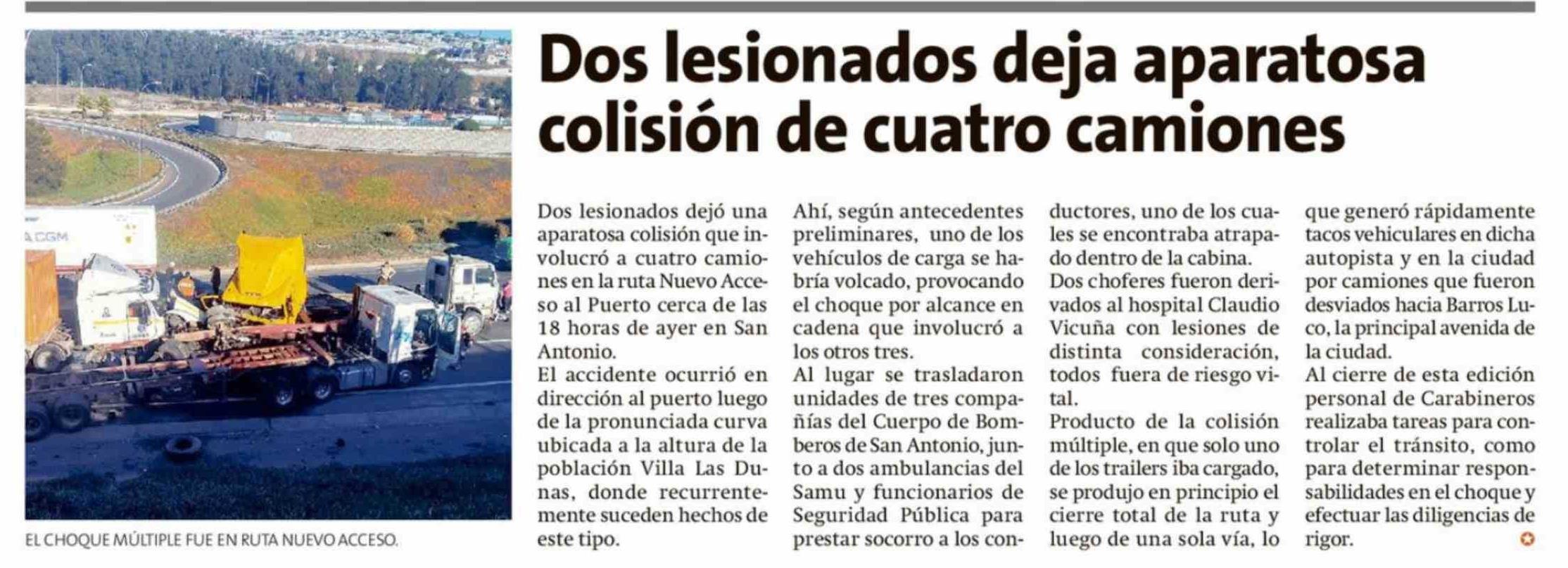 Dos lesionados deja aparatosa colisión de cuatro camiones