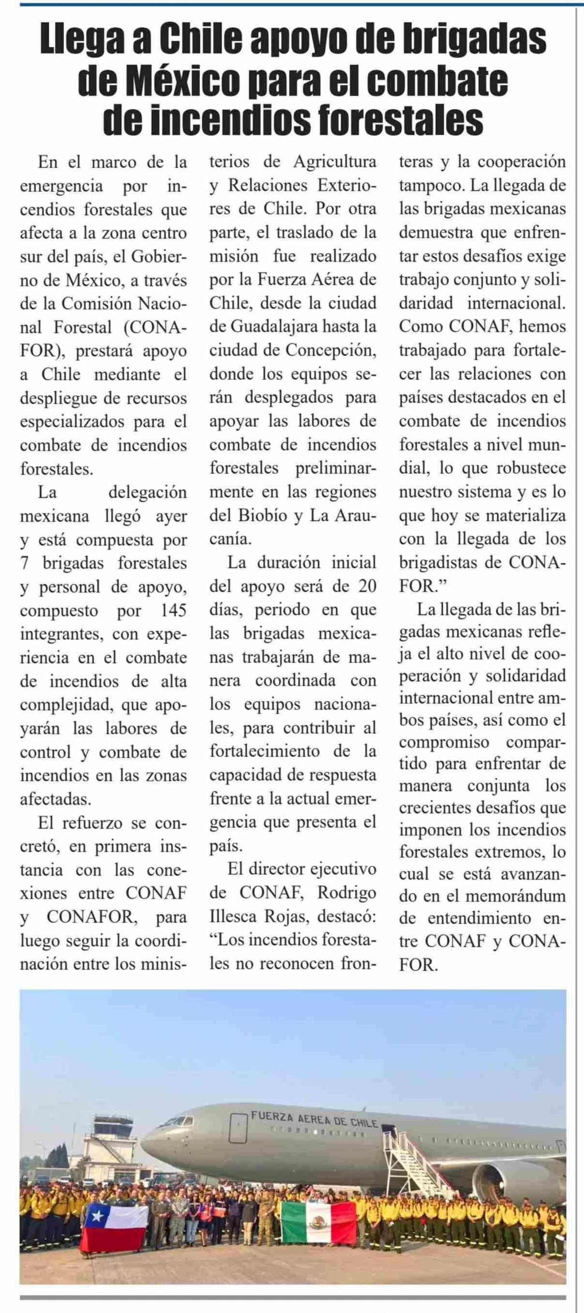 Llega a Chile apoyo de brigadas de México para el combate de incendios forestales