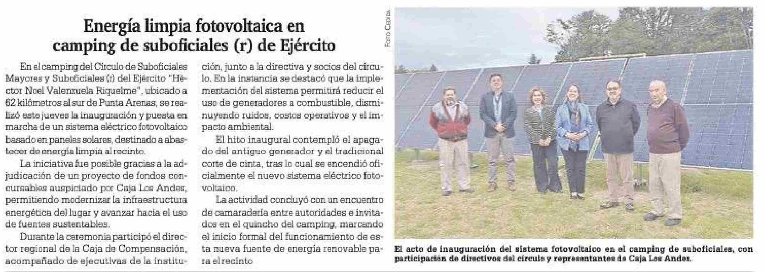 Energía limpia fotovoltaica en camping de suboficiales (r) de Ejército