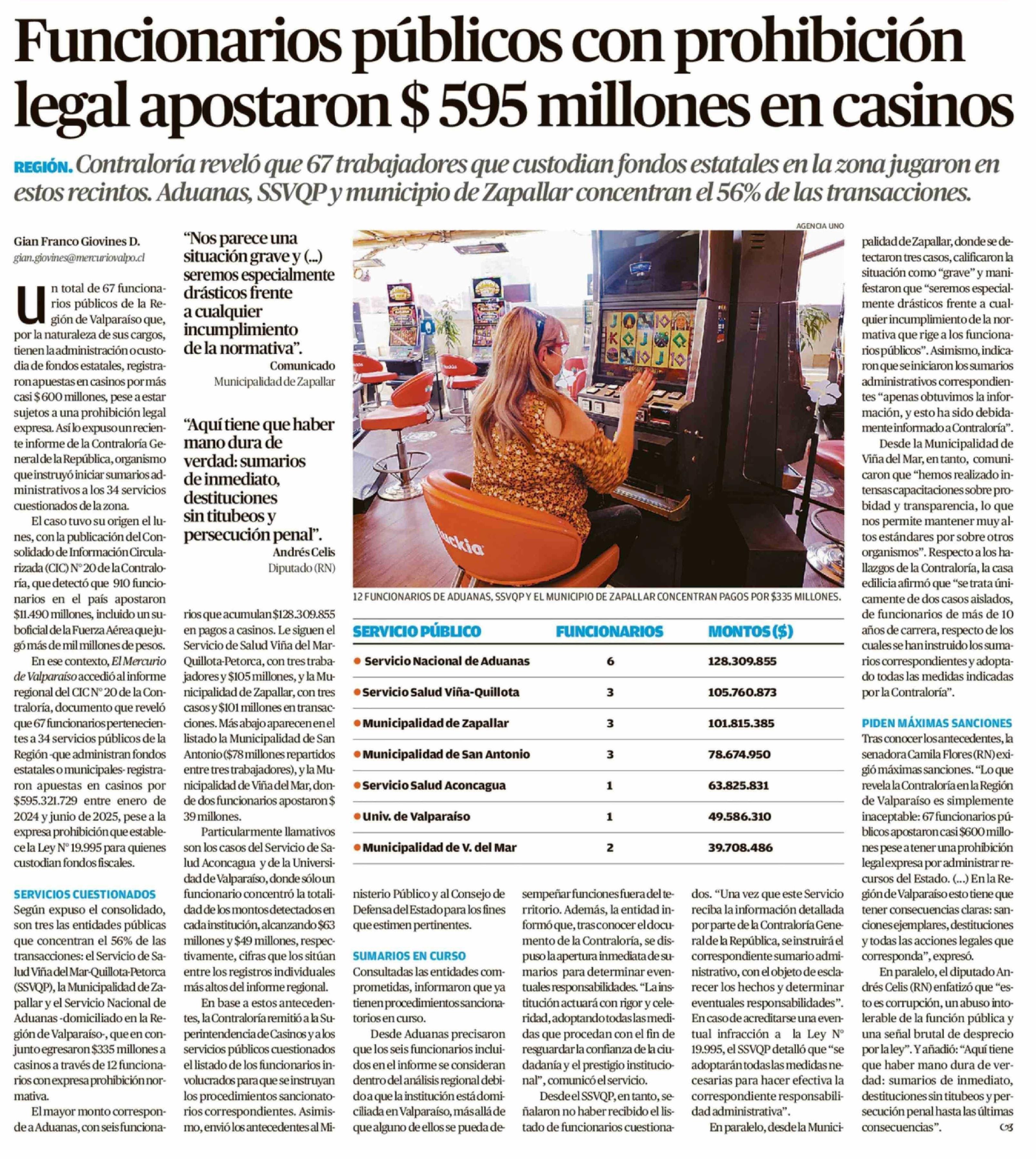 Funcionarios públicos con prohibición legal apostaron $ 595 millones en casinos