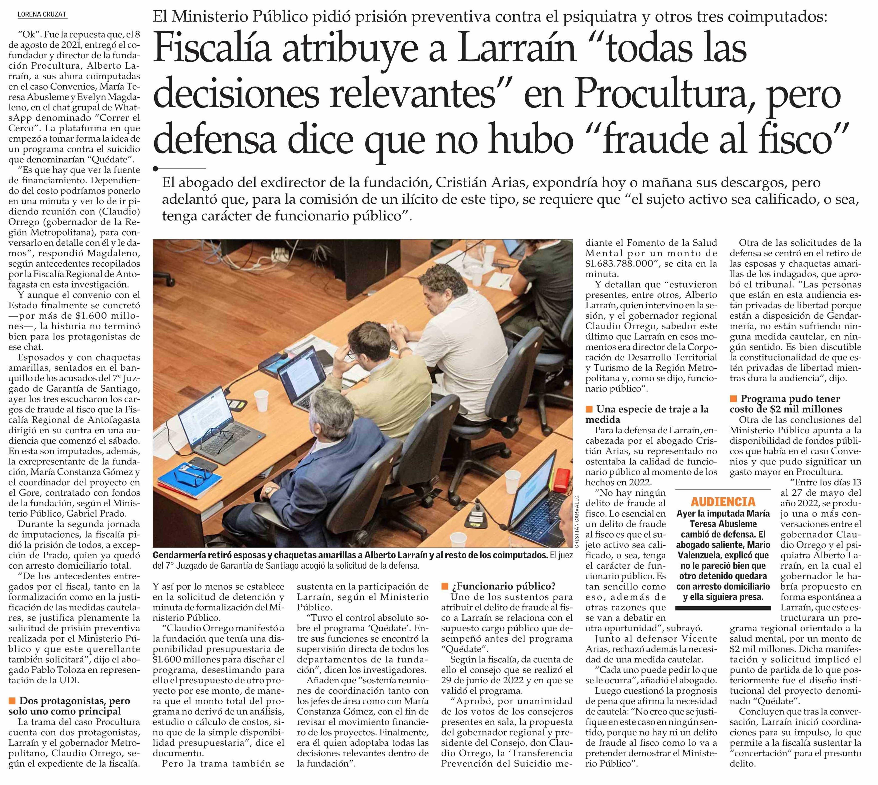 Fiscalía atribuye a Larraín “todas las decisiones relevantes” en Procultura, pero defensa dice que no hubo “fraude al fisco”