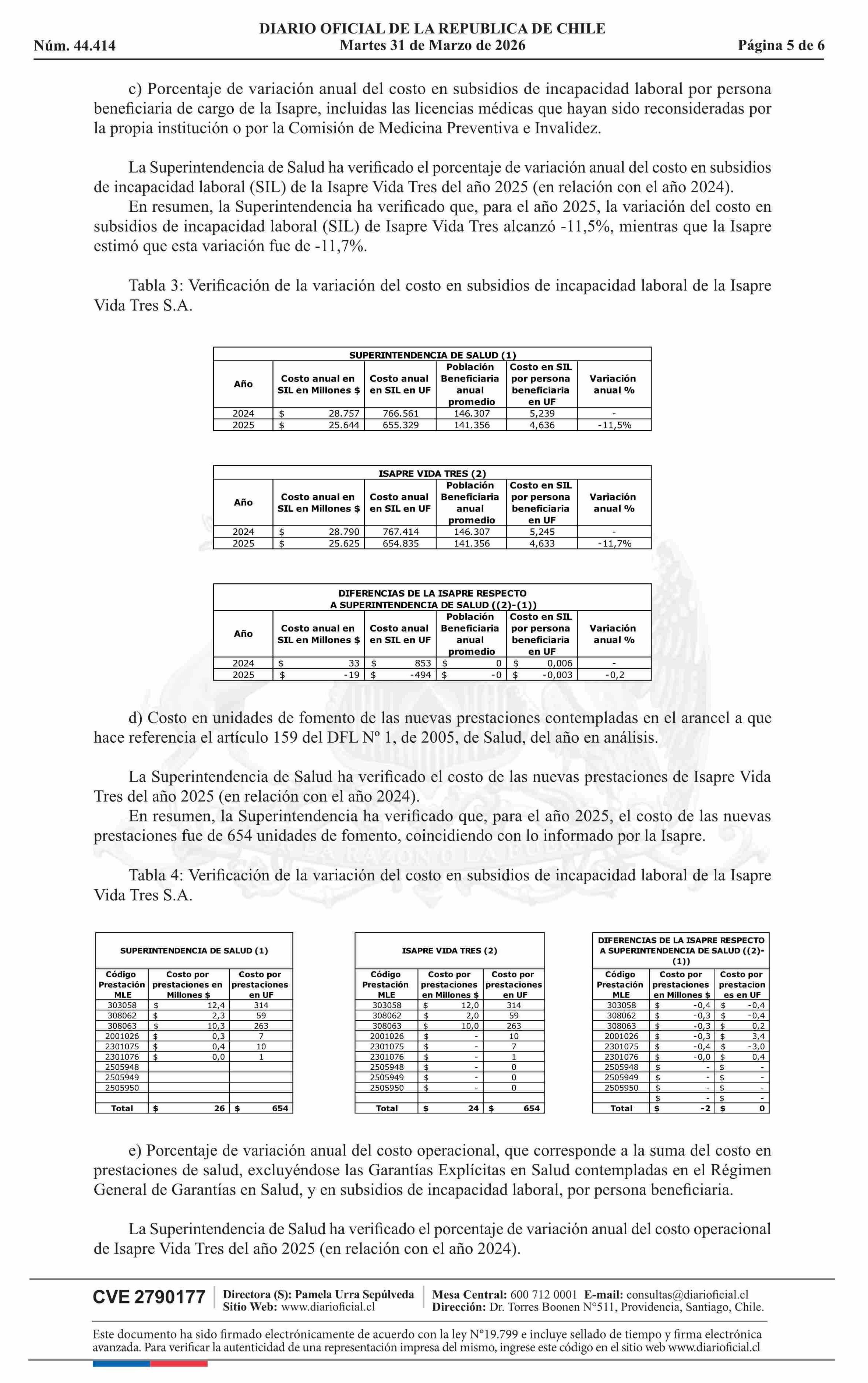 | Título: | Superintendencia de Salud / Intendencia de Fondos y Seguros Previsionales de Salud AUTORIZA ELAJUSTE DE LOS PRECIOS BASE DE LOS PLANES DE SALUD DE LA ISAPRE VIDA TRES S.A. |