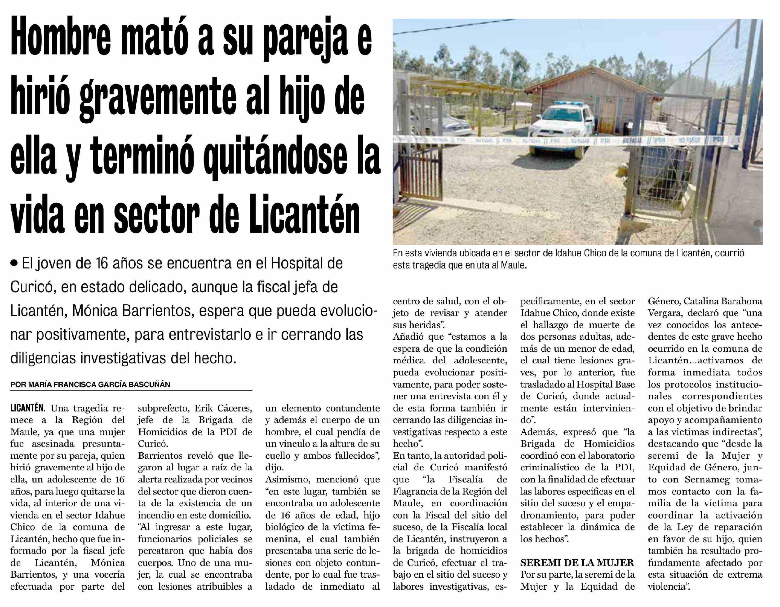 Hombre mató a su pareja e hirió gravemente al hijo de ella y terminó quitándose la vida en sector de Licantén