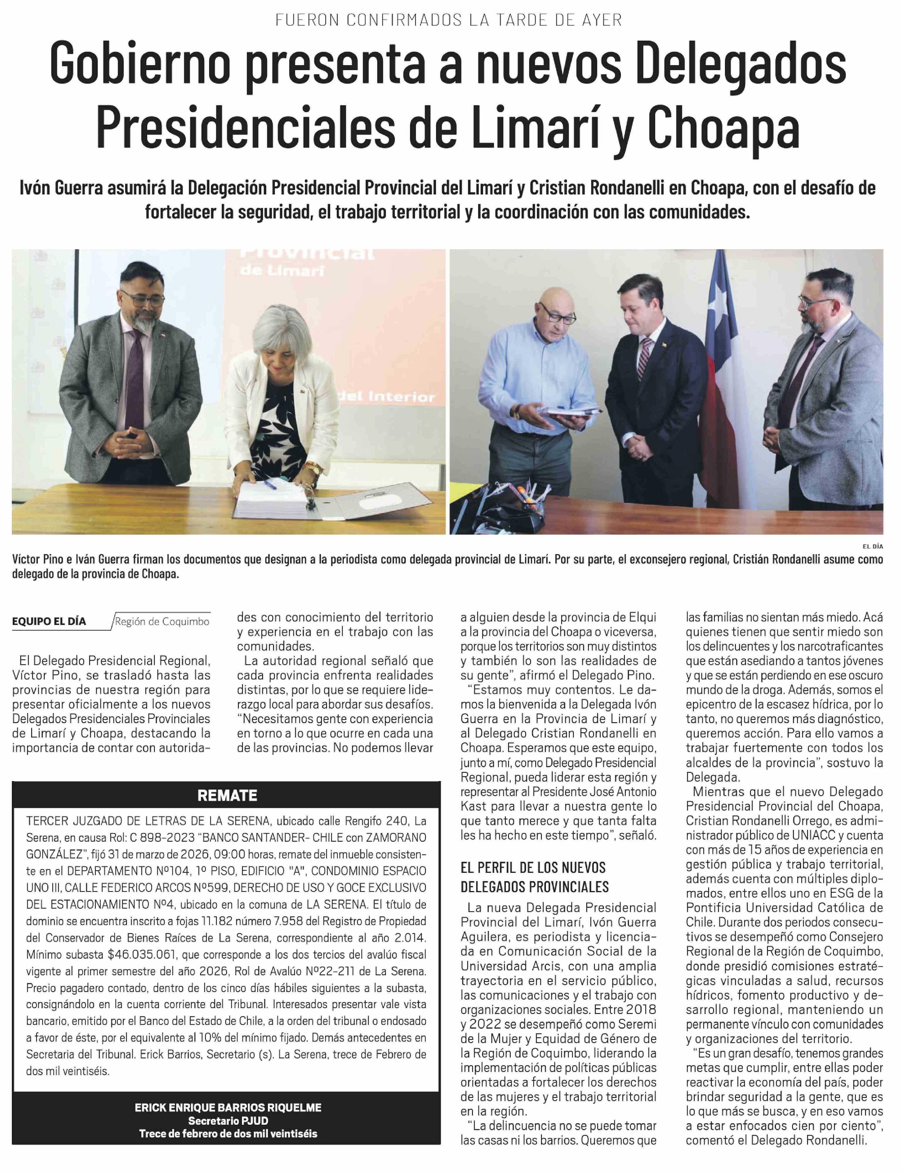 Gobierno presenta a nuevos Delegados Presidenciales de Limarí y Choapa