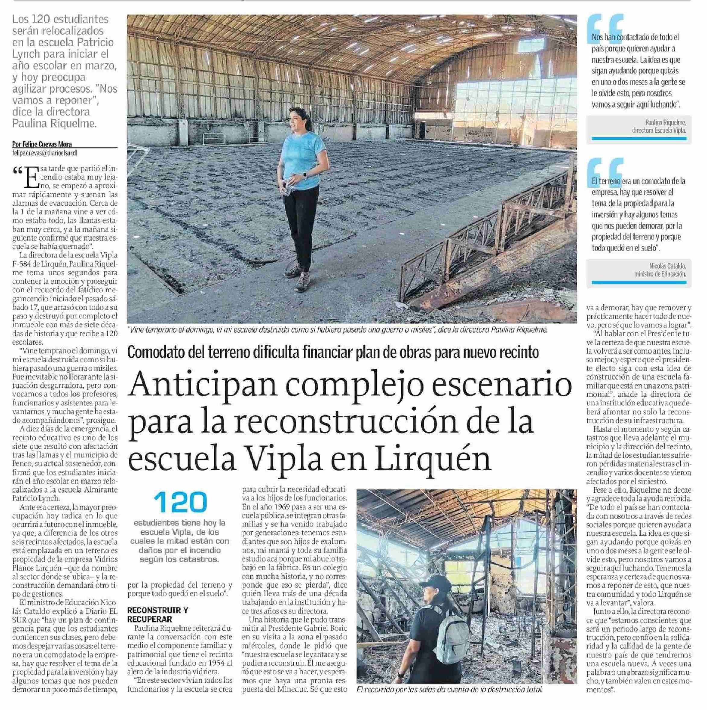 Anticipan complejo escenario para la reconstrucción de la escuela Vipla en Lirquen