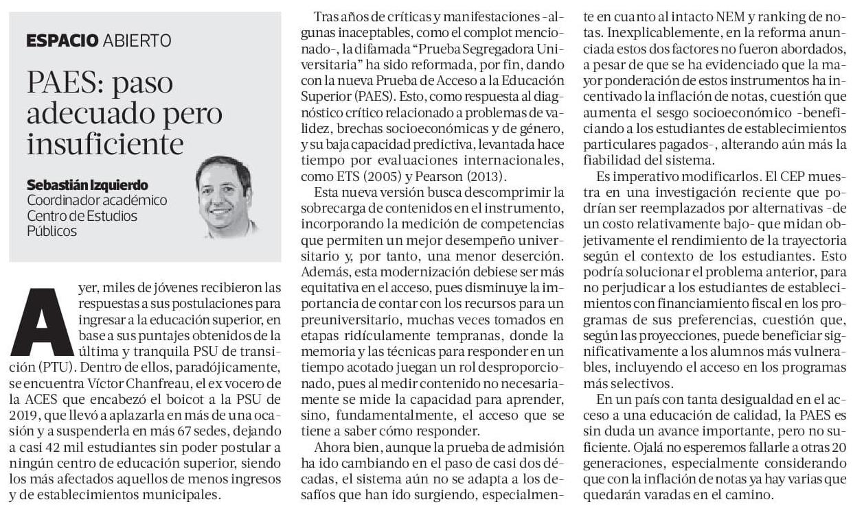 PAES: paso adecuado pero insuficiente