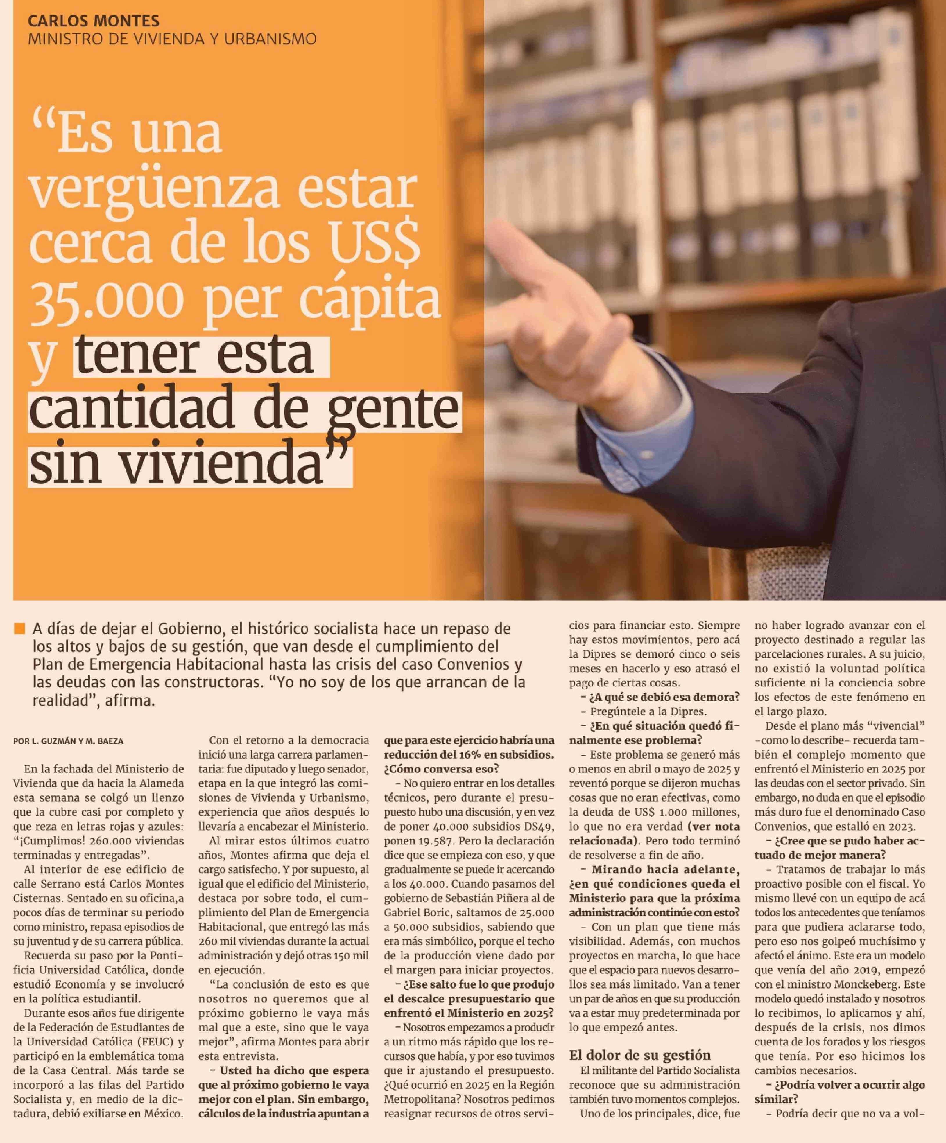 "Es una vergüenza estar cerca de los USS 35.000 per cápita y tener esta cantidad de gente sin vivienda