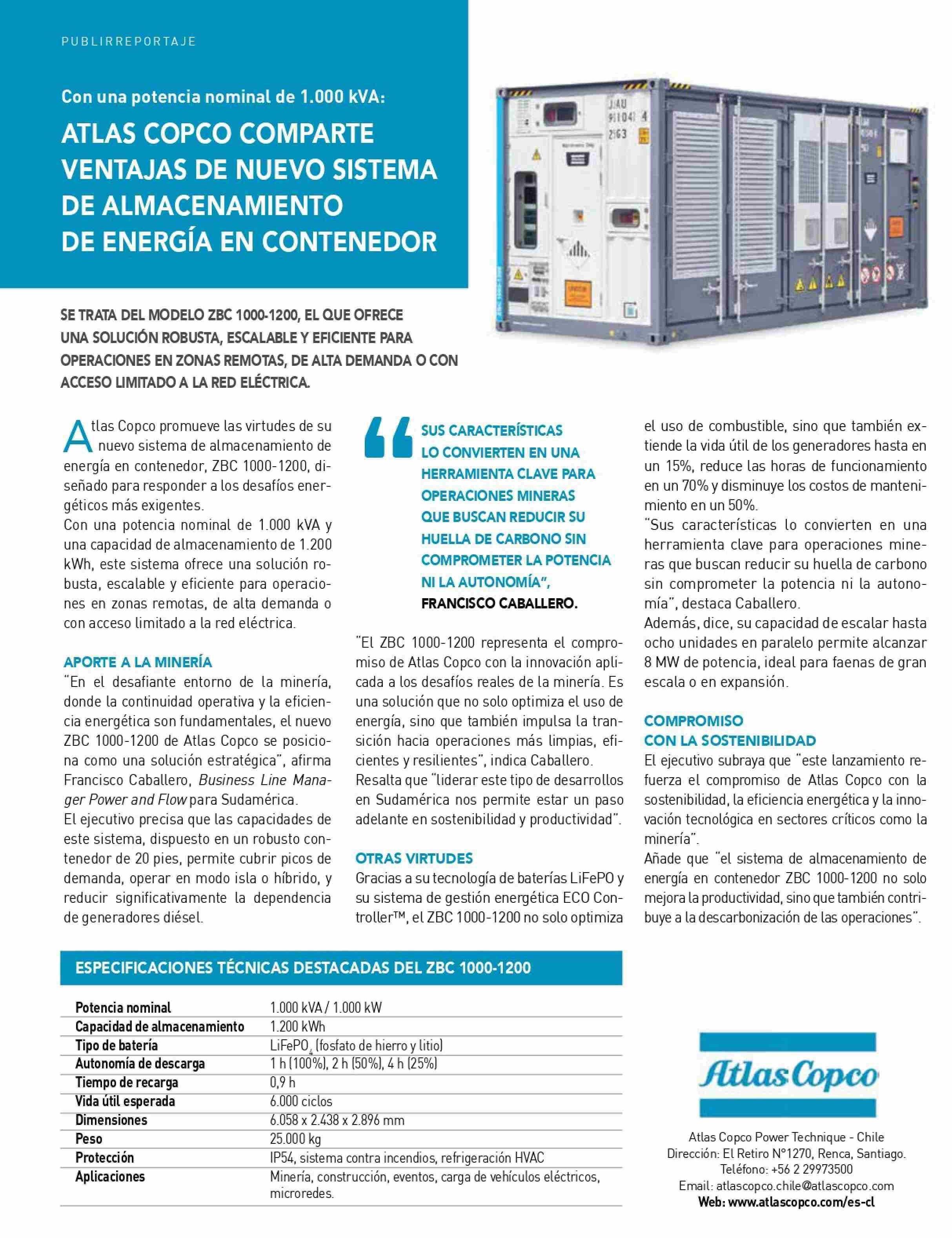 ATLAS COPCO COMPARTE VENTAJAS DE NUEVO SISTEMA DE ALMACENAMIENTO DE ENERGÍA EN CONTENEDOR