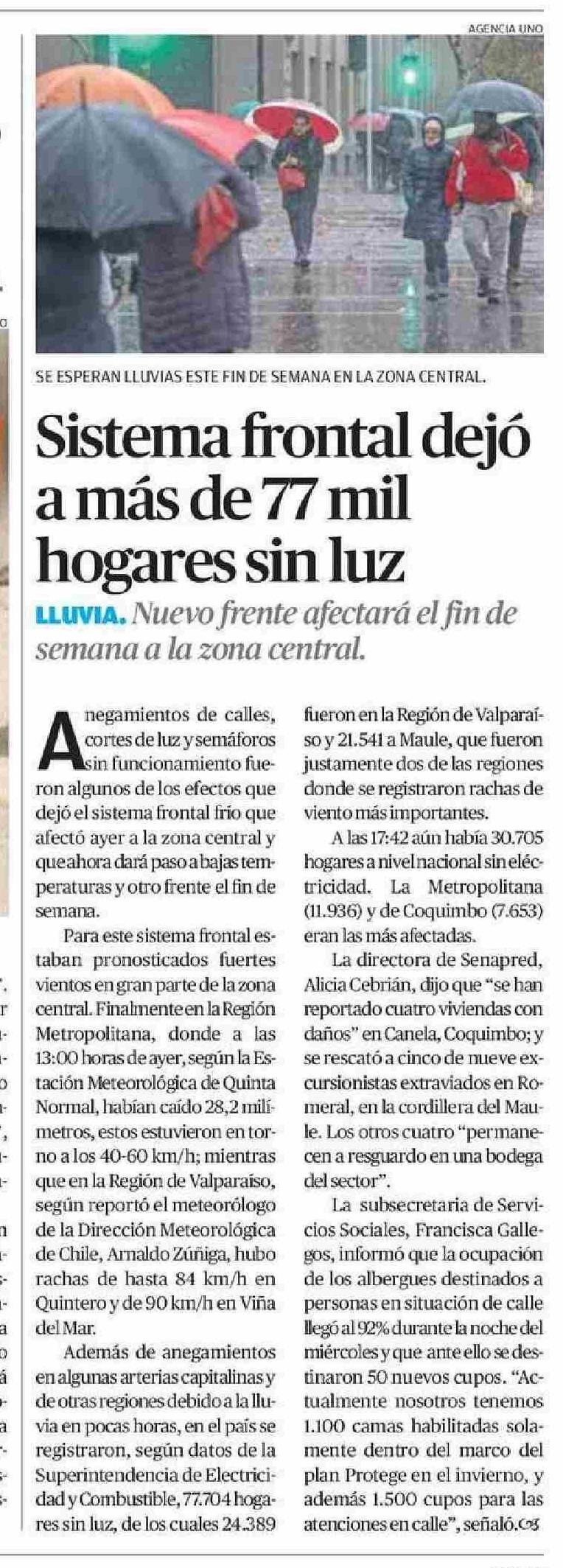 Sistema frontal dejó hogares sin luz a más de 77 mil