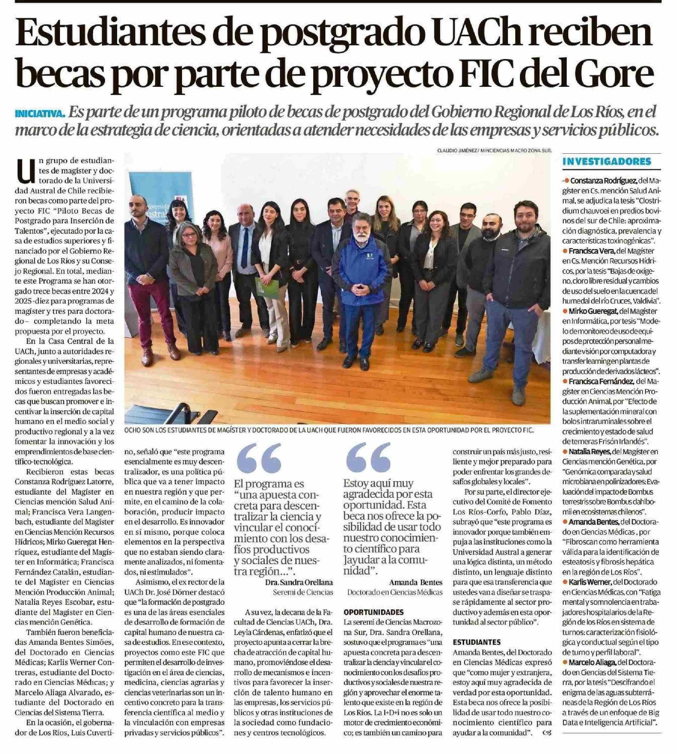 Estudiantes de postgrado UACh reciben becas por parte de proyecto FIC del Gore