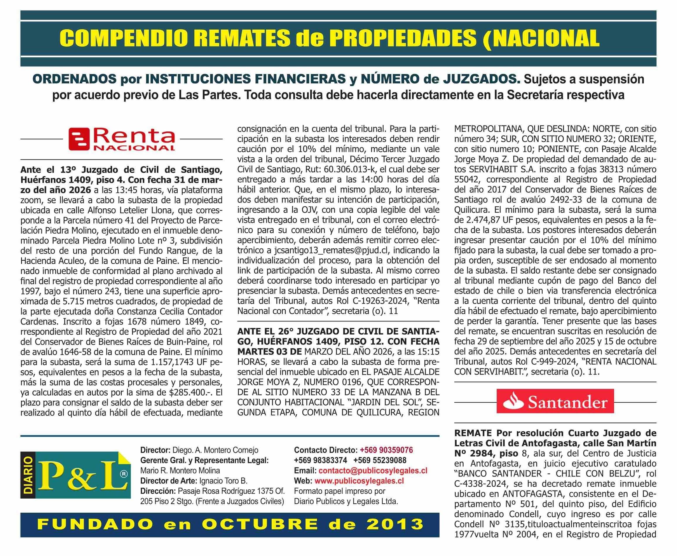 REMATES: COMPENDIO REMATES de PROPIEDADES (NACIONAL