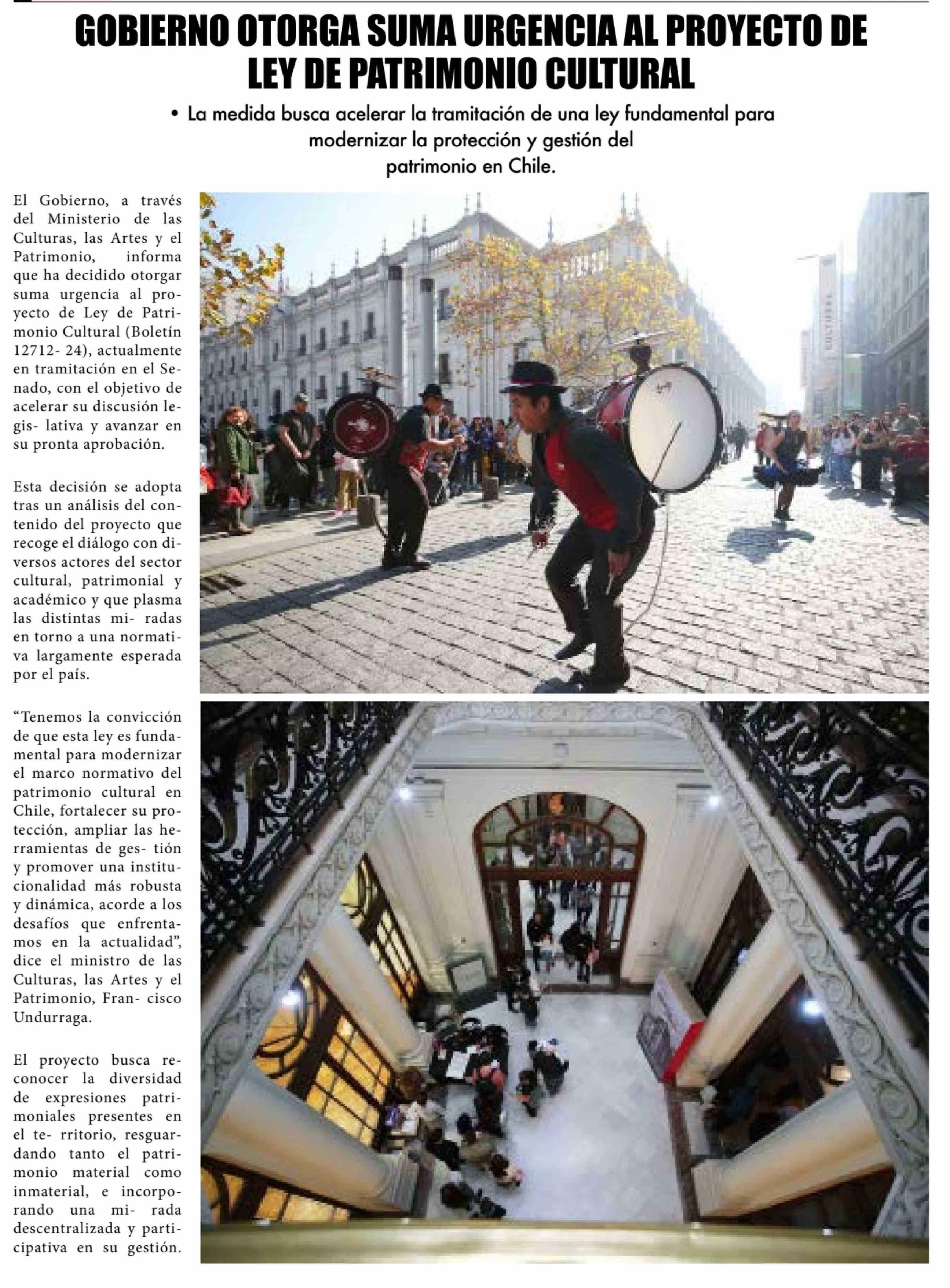 GOBIERNO OTORGA SUMA URGENCIA AL PROYECTO DE LEY DE PATRIMONIO CULTURAL