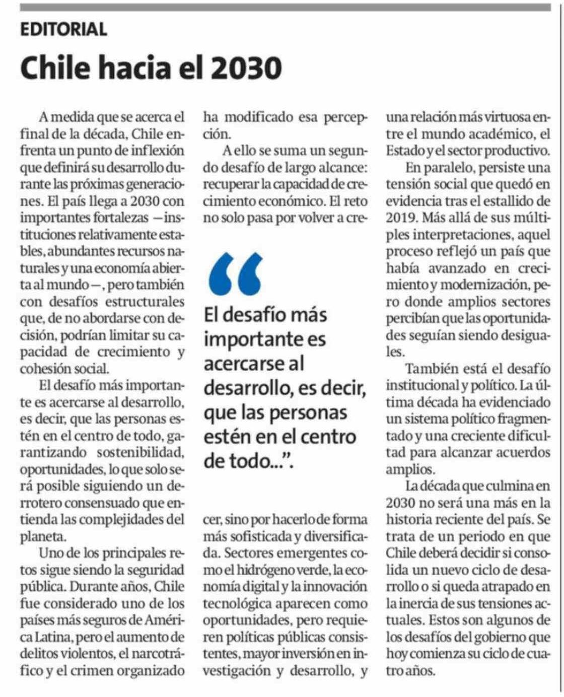 Editorial: Chile hacia el 2030