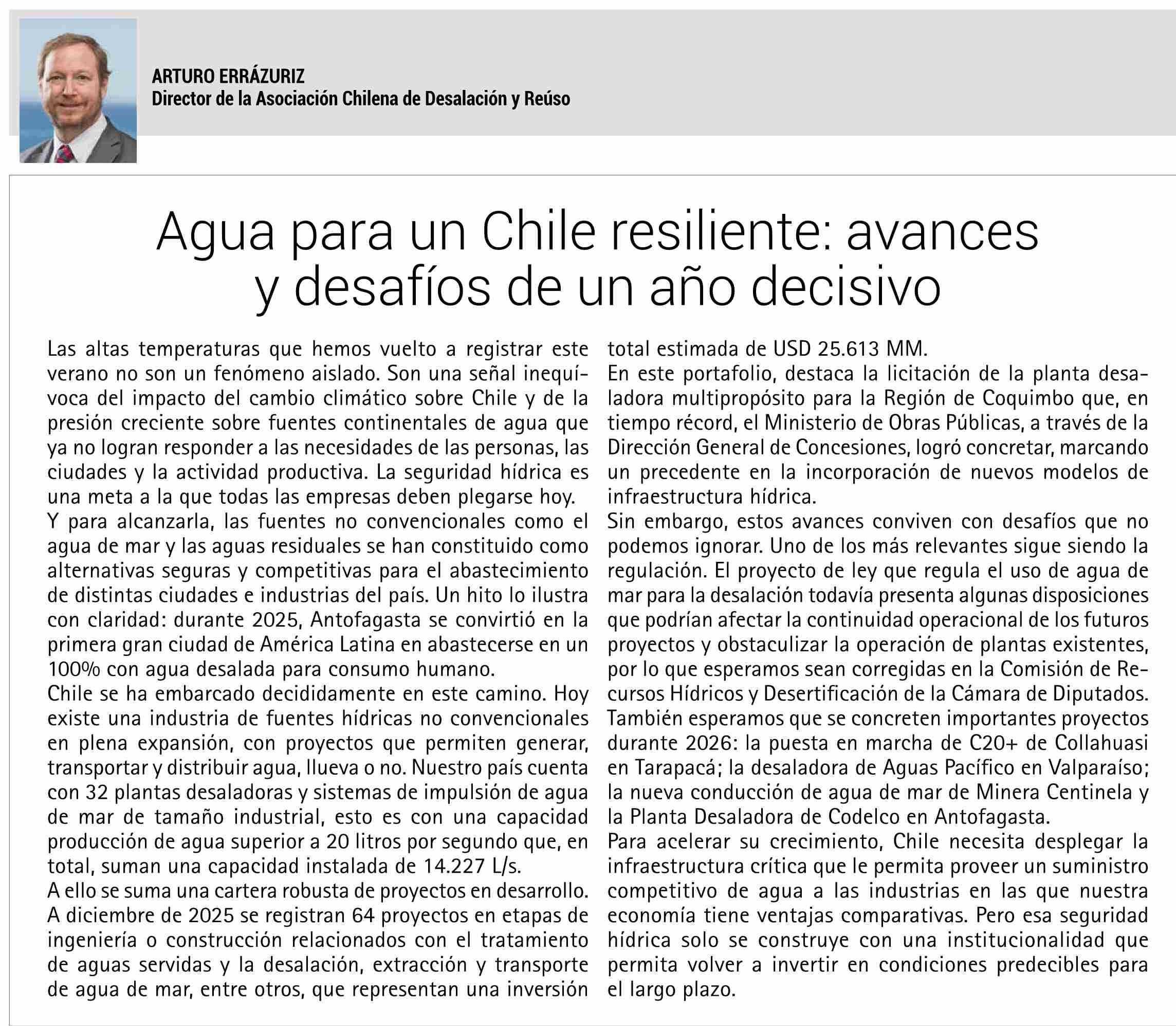 Columnas de Opinión: Agua para un Chile resiliente: avances y desafíos de un año decisivo