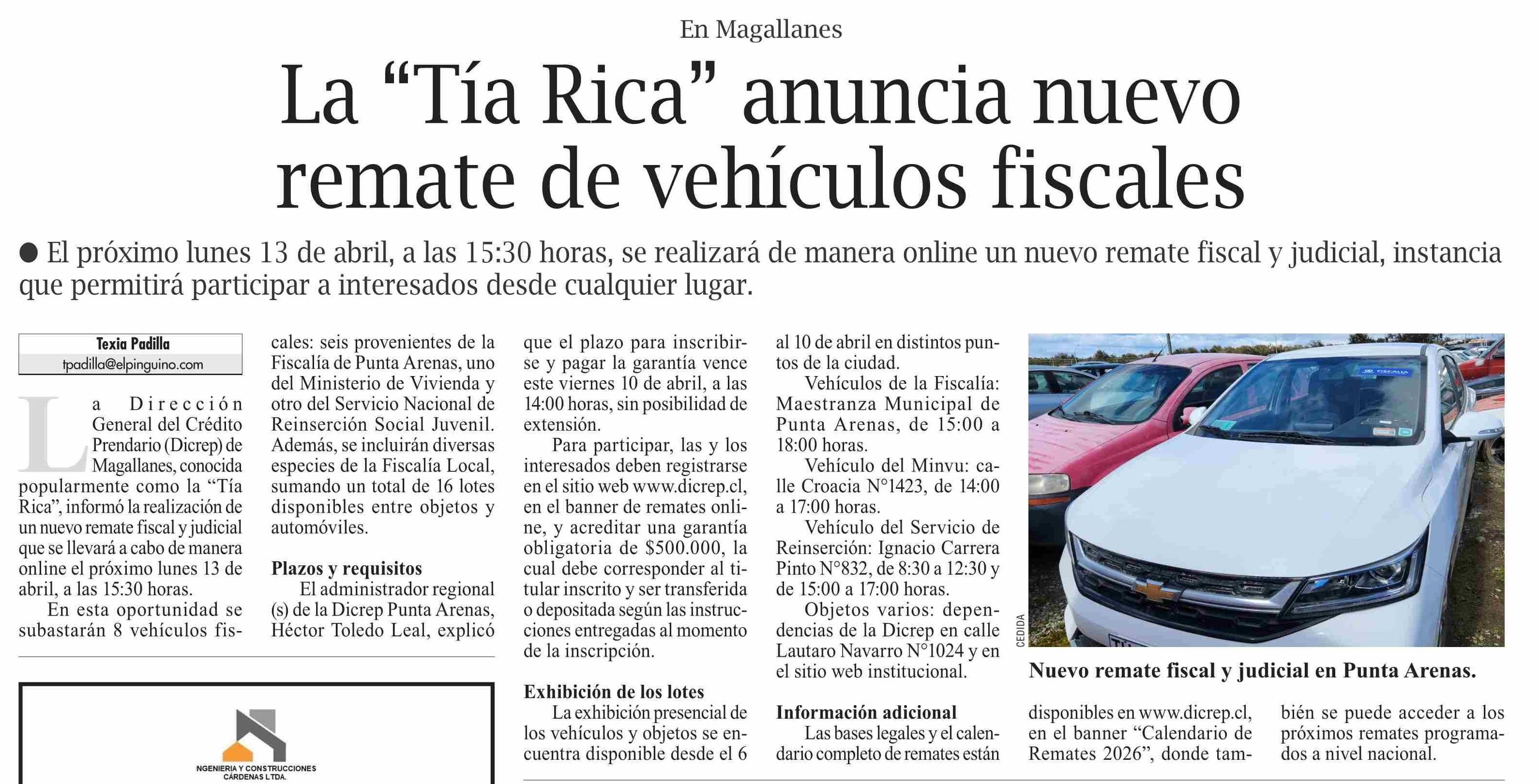 La “Tía Rica” anuncia nuevo remate de vehículos fiscales
